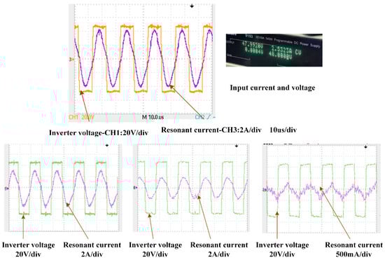 Through closed-loop regulation, the output voltage is maintained at V o 1 = V ref . The duty cycles of S 5 and S 6 gradually decrease, allowing the output voltage to stabilize. Meanwhile, the output current gradually diminishes, eventually approaching zero.