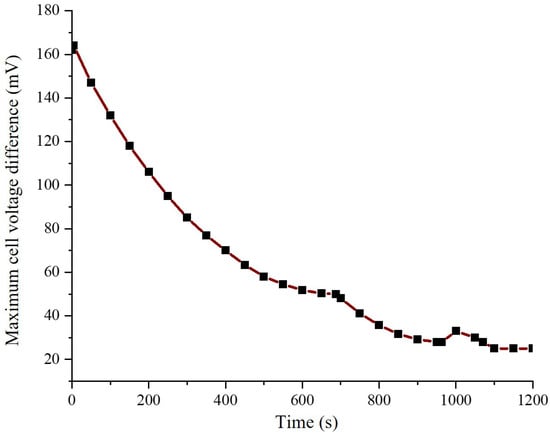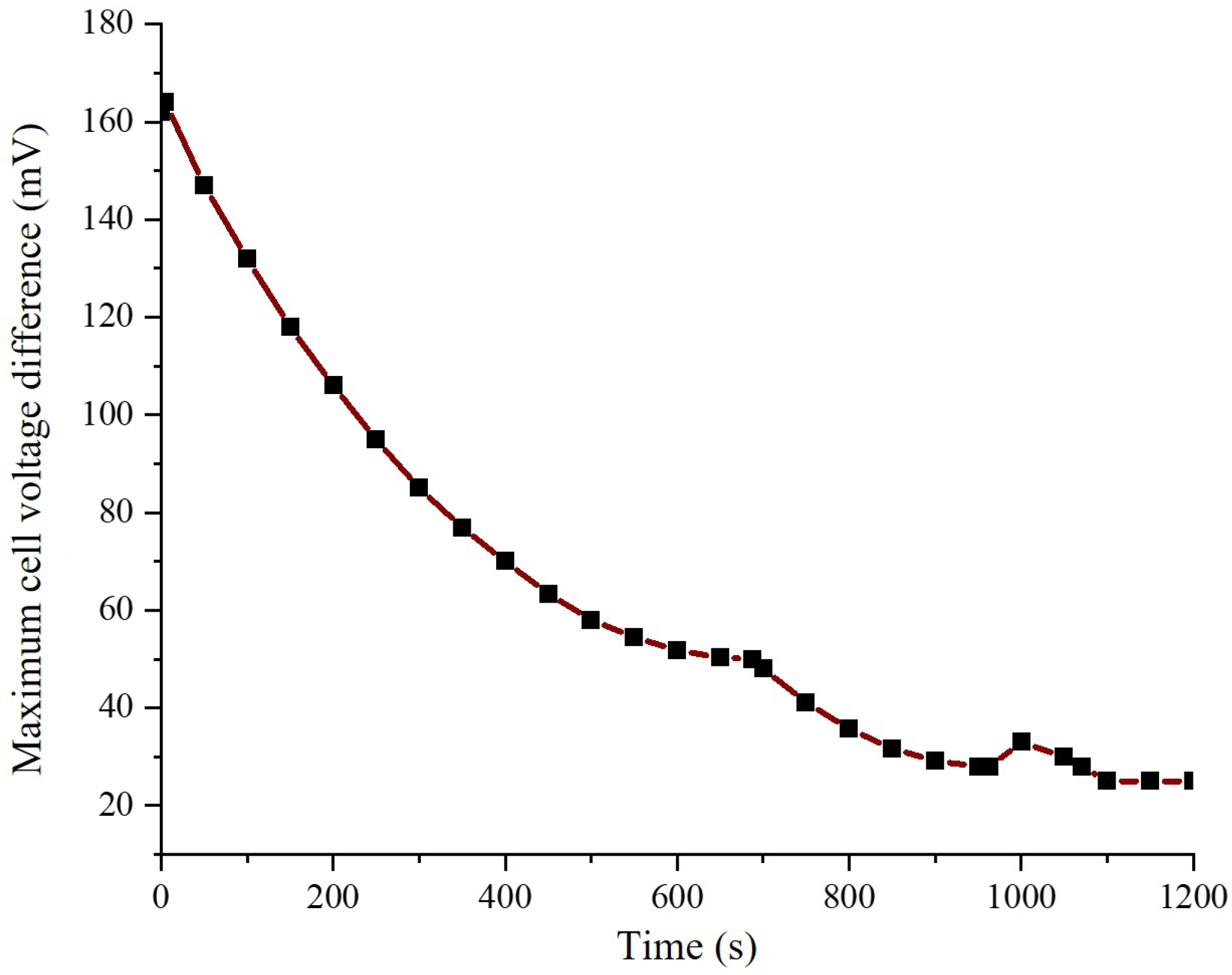 Figure 28. Variation of maximum cell voltage difference during equalization charging of the battery pack.