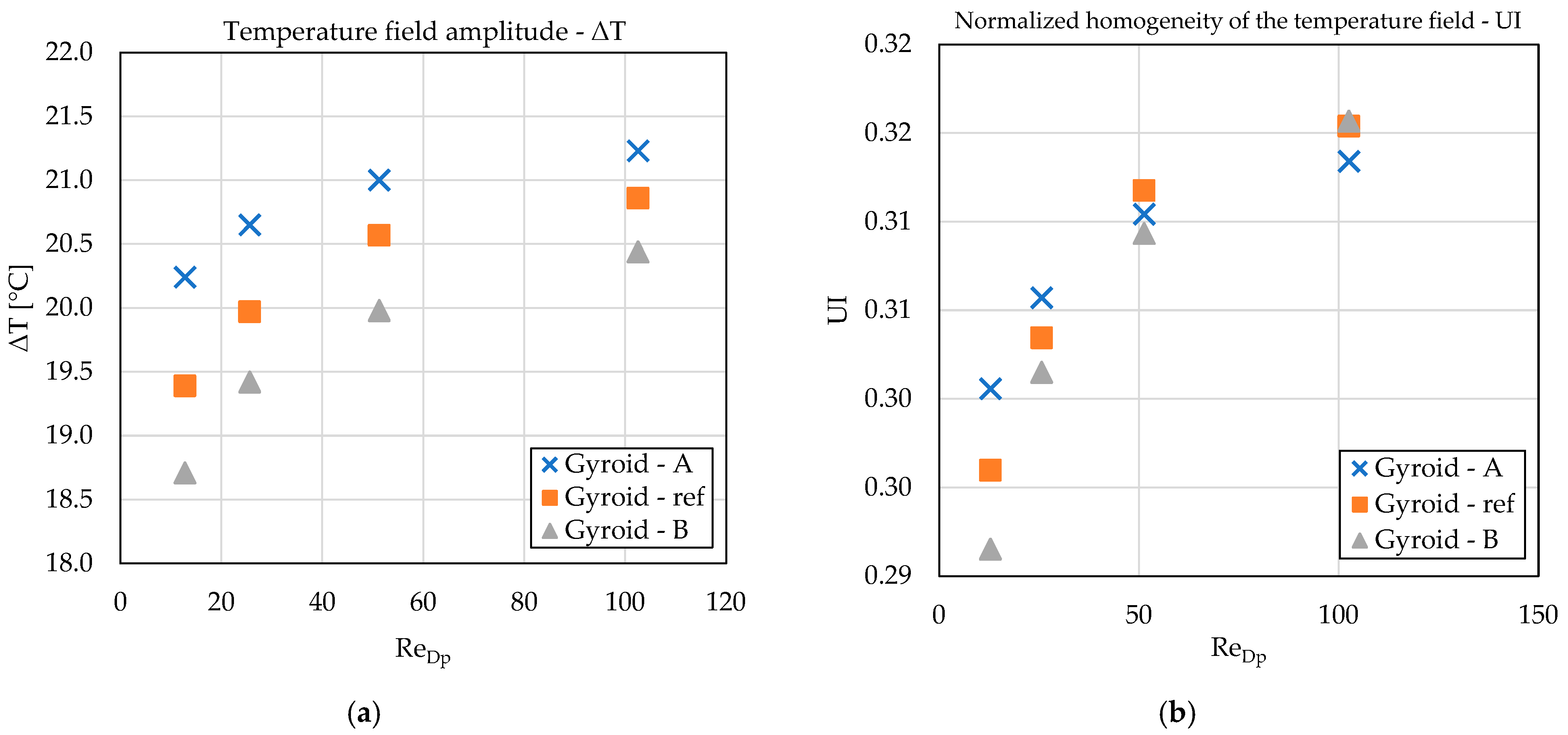 The robustness of the conclusions is supported by numerical-uncertainty considerations: the grid-independence study showed that variations between the two finest meshes remained below 0.1%, and convergence stability was confirmed by residual reduction and monotonic temperature evolution. These factors indicate that the observed performance differences stem from physical effects of the gyroid geometry rather than numerical artefacts.