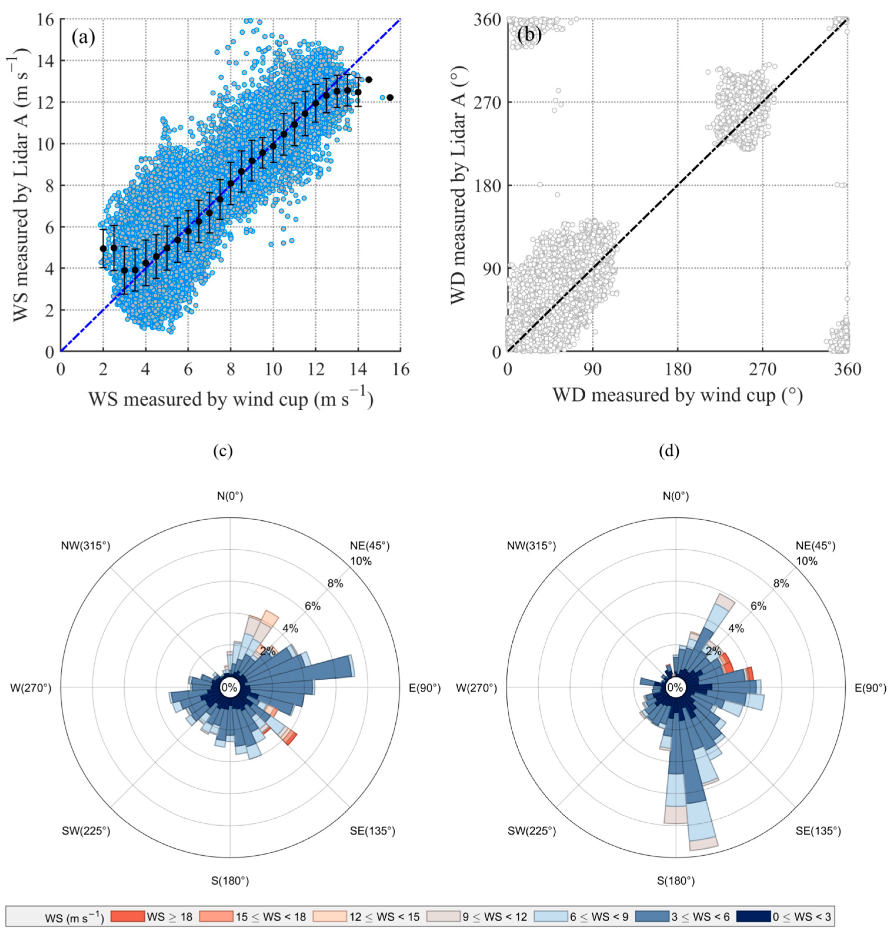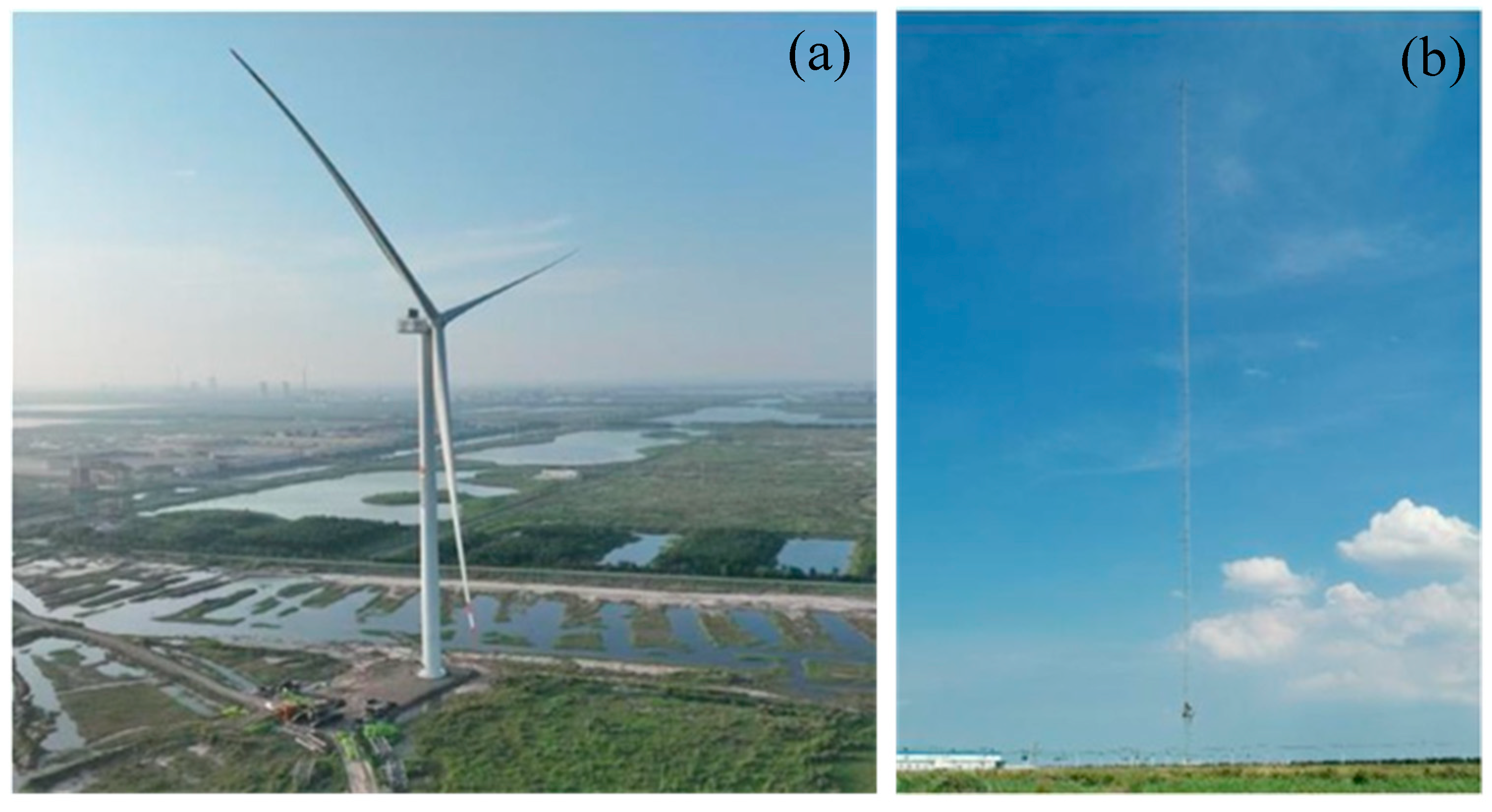- Liao, H.L.; Jing, H.M.; Ma, C.M.; Tao, Q.Y.; Li, Z.G. Field measurement study on turbulence field by wind tower and Windcube Lidar in mountain valley. J. Wind. Eng. Ind. Aerodyn. 2020, 197, 104090. [Google Scholar] [CrossRef]