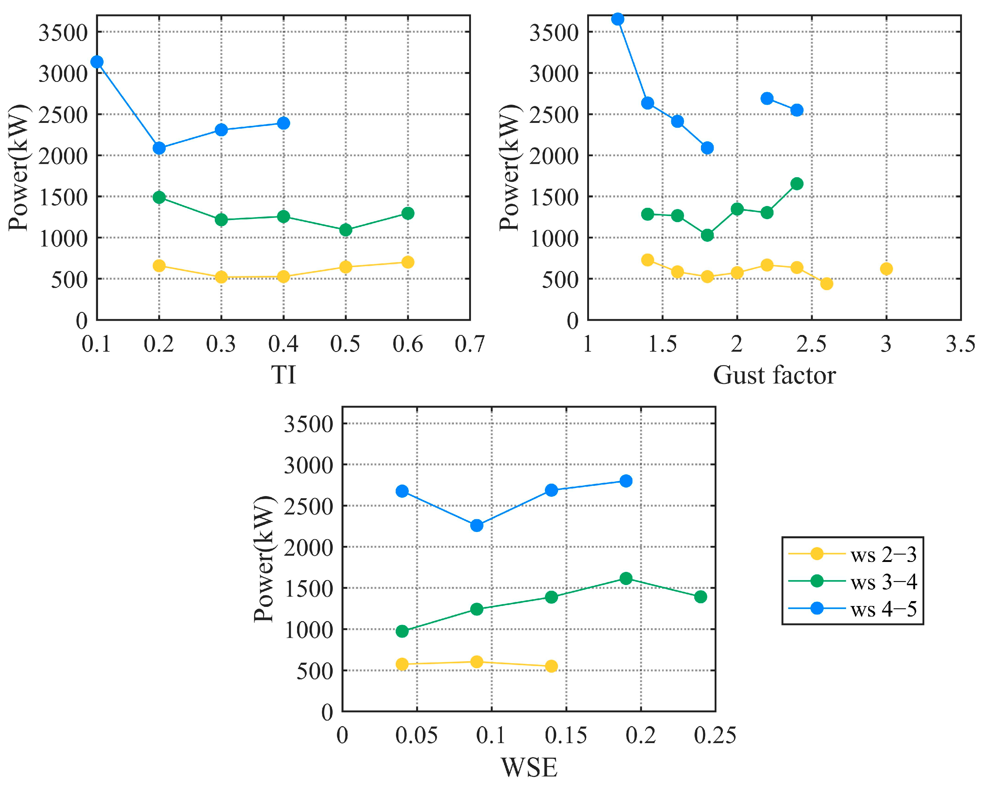 - Kim, D.Y.; Kim, Y.H.; Kim, B.S. Changes in wind turbine power characteristics and annual energy production due to atmospheric stability, turbulence intensity, and wind shear. Energy 2021, 214, 119051. [Google Scholar] [CrossRef]
