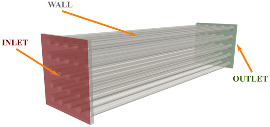 Before simulating the domain of interest, the numerical setup was validated by simulating the flow in a single circular channel and in a bundle of parallel mini-channels. For the single channel, two sizes were tested: (1) diameter and length , and (2) diameter and length . For the bundle of mini-channels, each mini-channel had a diameter of , and the entire bundle was enclosed in a bounding box of . Figure 5 shows the computational domain for this configuration.