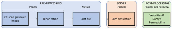 - Narváez, A.; Zauner, T.; Raischel, F.; Hilfer, R.; Harting, J. Quantitative analysis of numerical estimates for the permeability of porous media fromlattice-Boltzmann simulations. J. Stat. Mech. Theory Exp. 2010, 2010, P11026. [Google Scholar] [CrossRef]