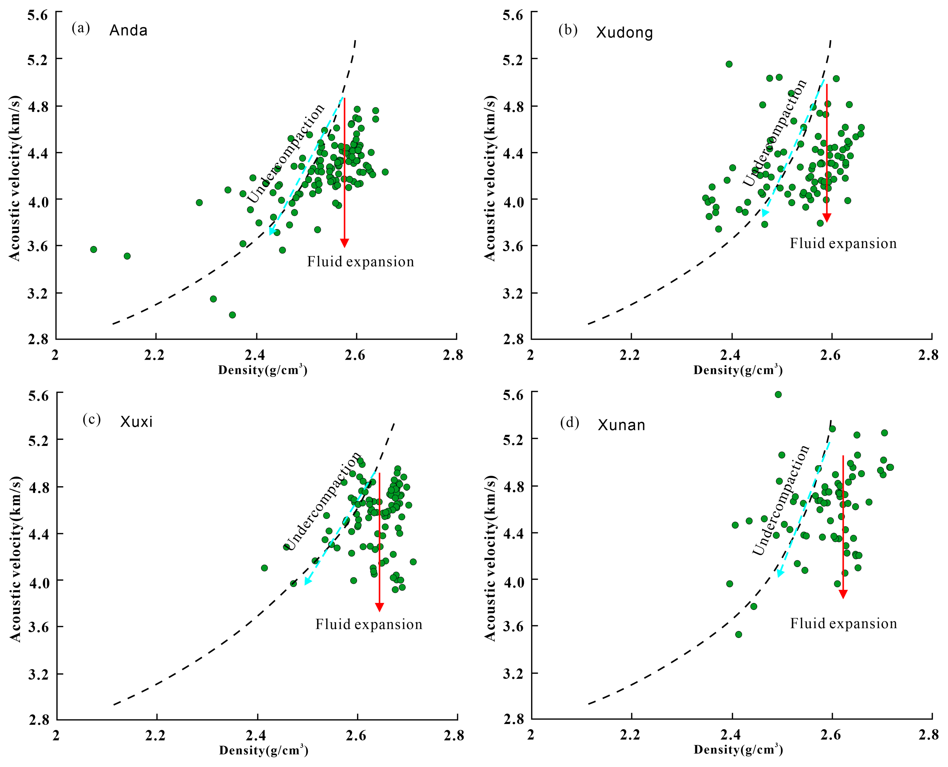 - Chen, H.; Zhang, F.; Jiang, Q.; Liu, H.; Sun, L.; Liu, G. Overpressure-generating mechanism and its evolution characteristics of Cretaceous Shahezi Formation in Xujiaweizi Fault Depression, Songliao Basin. Lithol. Reserv. 2025, 37, 102–114. [Google Scholar] [CrossRef]