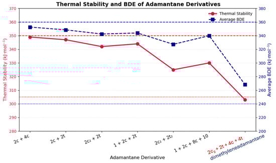 The BDE and thermal stability of some adamantane derivatives. This figure is regenerated based on results from reference [70].
