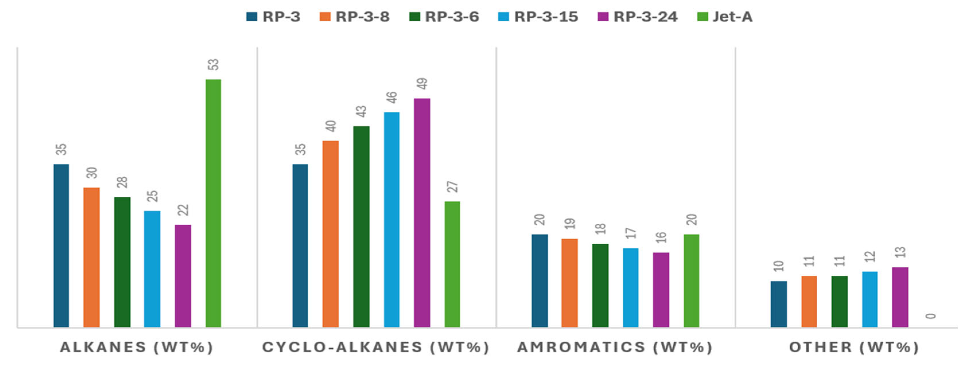 - Wang, X.; Jia, T.; Pan, L.; Liu, Q.; Fang, Y.; Zou, J.-J.; Zhang, X. Review on the relationship between liquid aerospace fuel composition and their physicochemical properties. Trans. Tianjin Univ. 2021, 27, 87–109. [Google Scholar] [CrossRef]