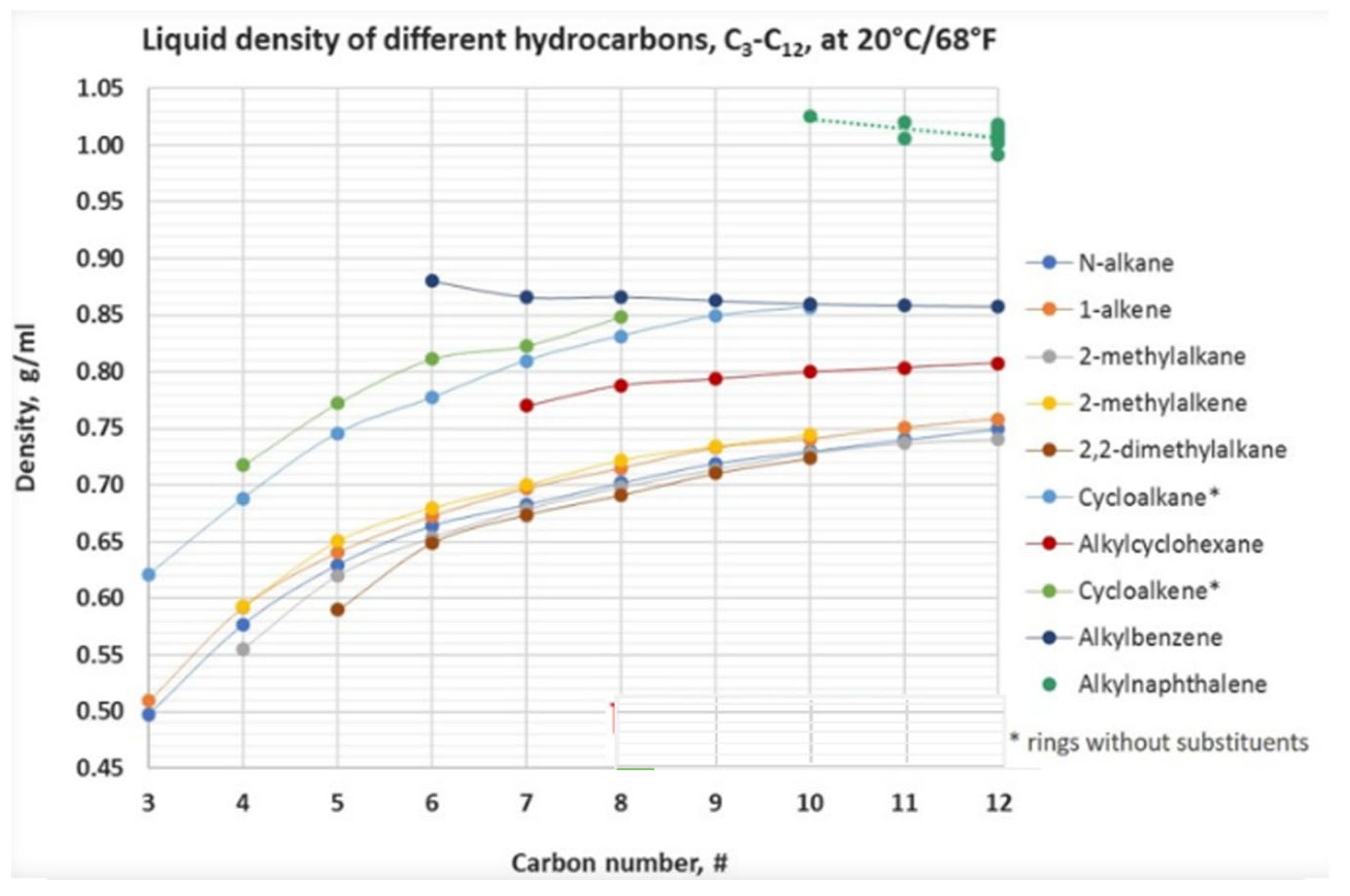 - The Engineering ToolBox. Hydrocarbons, Linear Alcohols and Acids–Densities. Available online: https://www.engineeringtoolbox.com/density-alkane-alkene-benzene-carbon-number-alcohol-acid-alkyl-alkyne-d_1939.html (accessed on 27 May 2025).