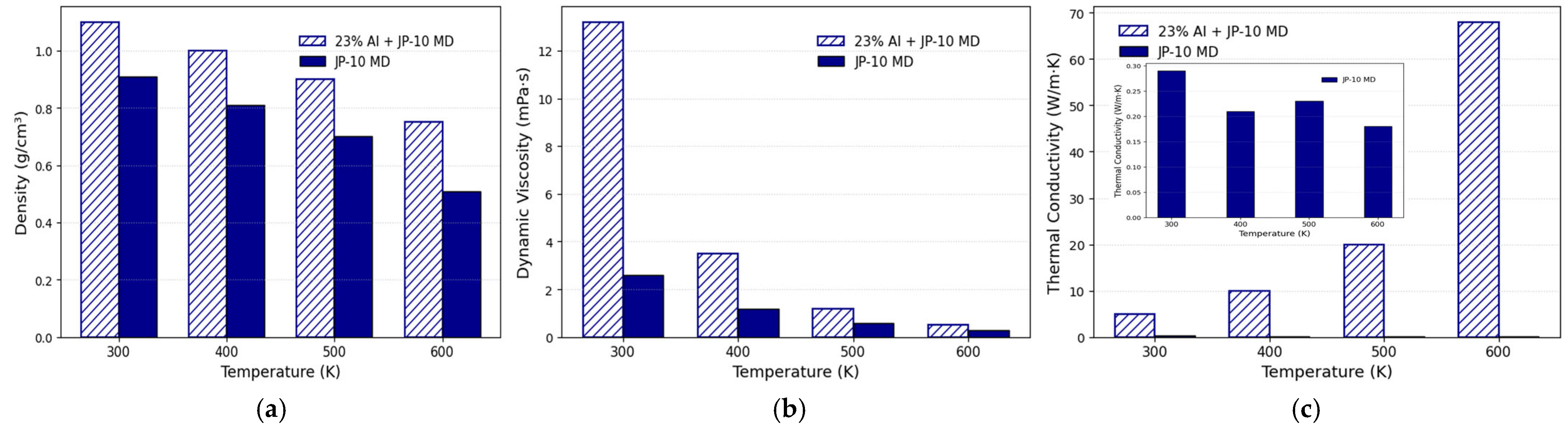 | Wen et al., 2025 | Al/JP-10 high-energy fuel | MD | Viscosity and thermal conductivity | Nanoparticles strongly modified transport properties of JP-10. | [101] |