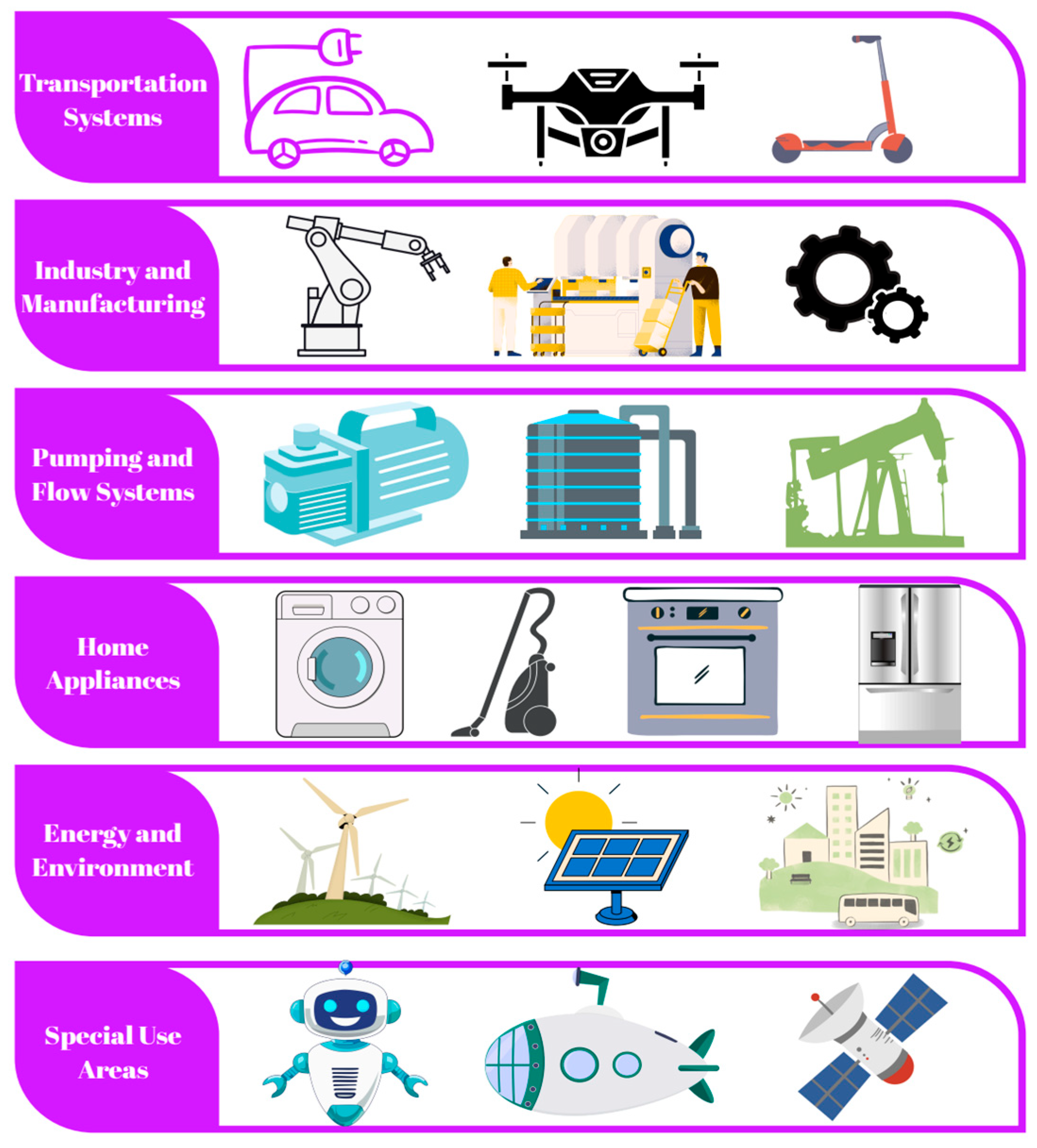 15]. These structural advantages make BLDC motors stand out in areas such as electric vehicles (EVs), unmanned aerial vehicles, robotic systems, and the aerospace and defense industries [