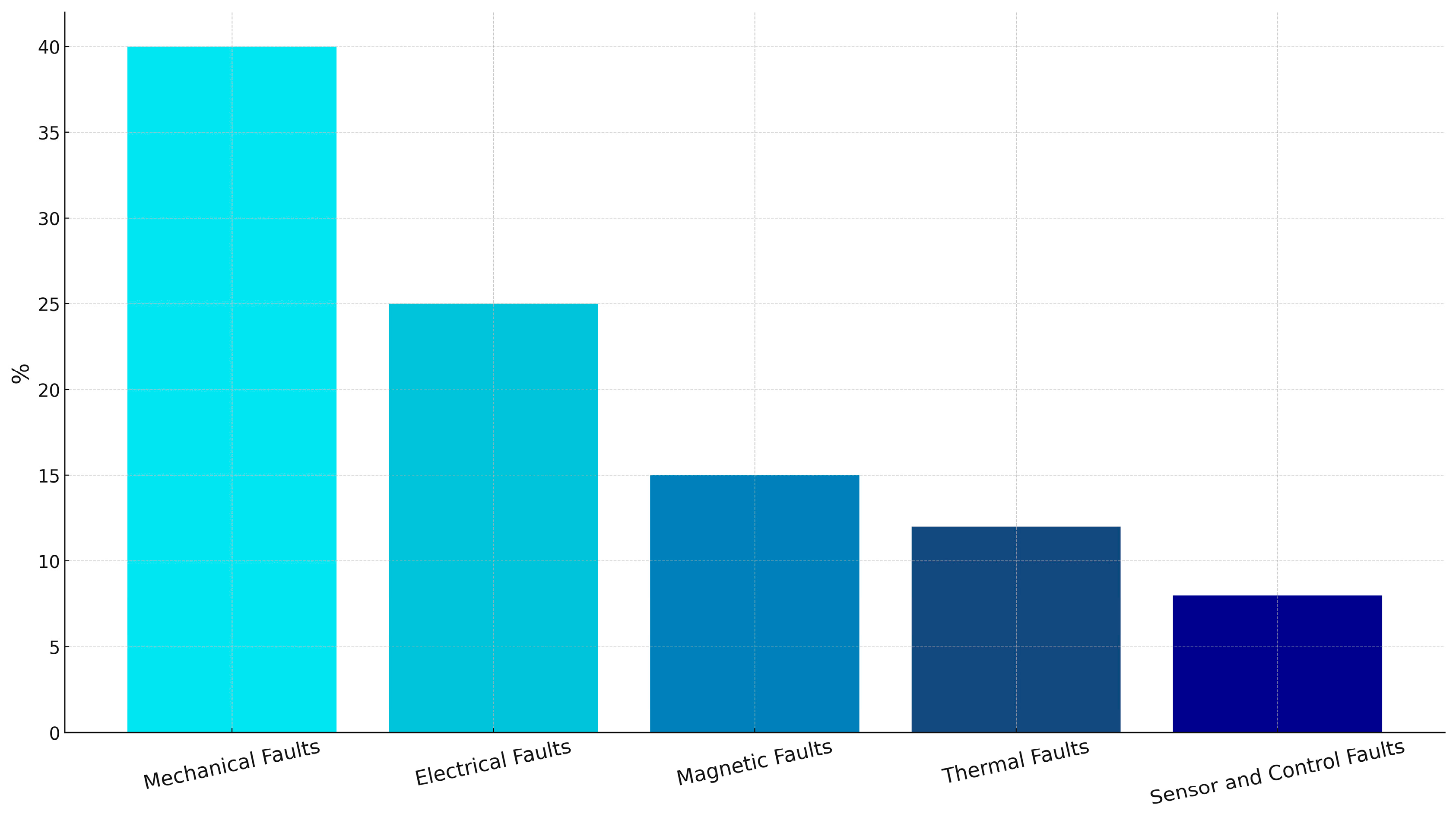 The mechanical, electrical, magnetic, thermal, and sensor-related faults summarized in