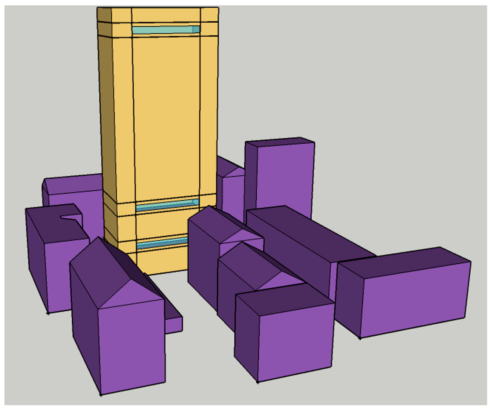 29] assessed the influence of urban environmental geometry on the thermal load of office buildings in a city with a hot and humid climate. When urban development was included in the energy simulations, an average reduction in thermal load of 16–18% was observed, which highlights the influence of the geometry of the building environment on energy consumption.