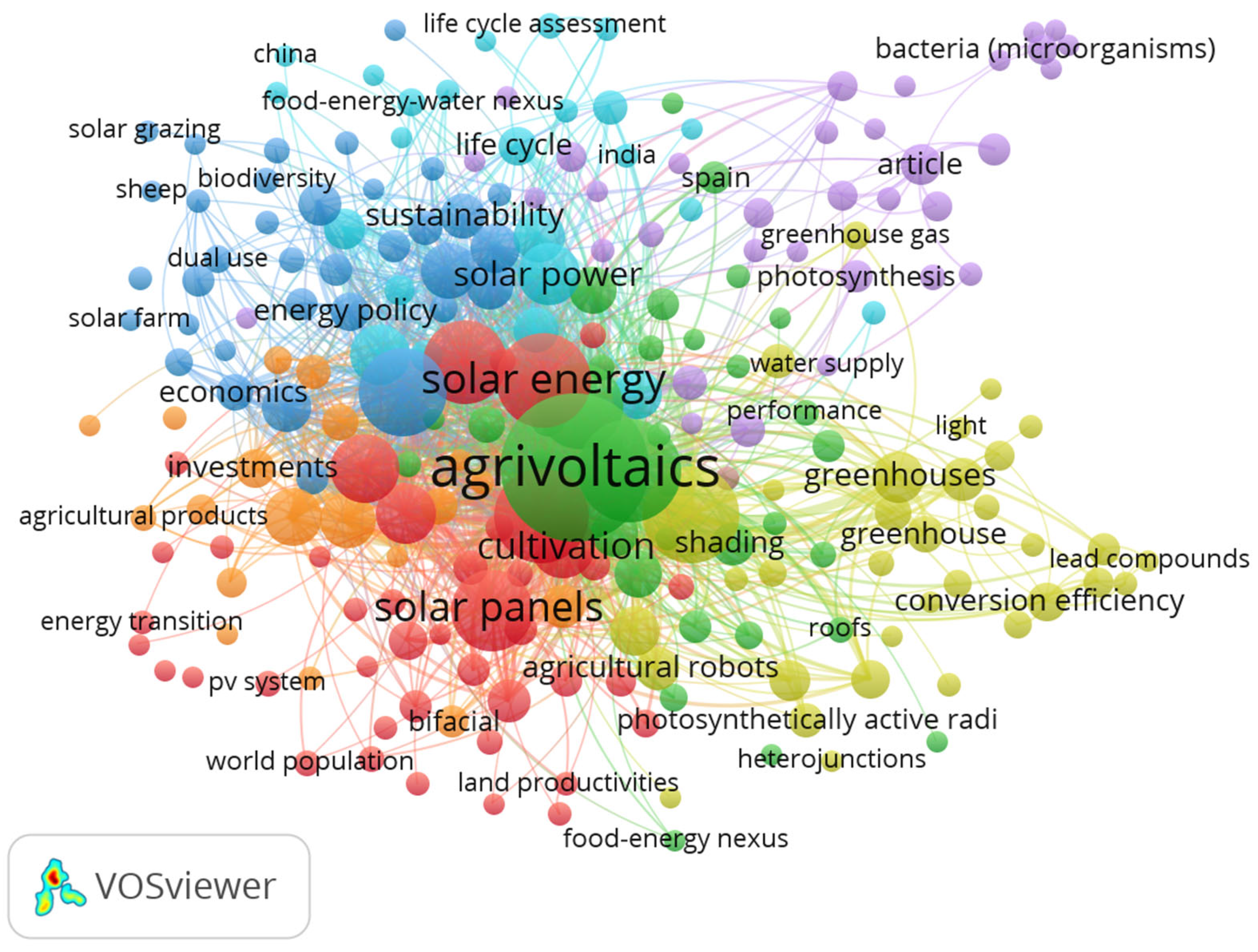 - Chalgynbayeva, A.; Gabnai, Z.; Lengyel, P.; Pestisha, A.; Bai, A. Worldwide Research Trends in Agrivoltaic Systems—A Bibliometric Review. Energies 2023, 16, 611. [Google Scholar] [CrossRef]