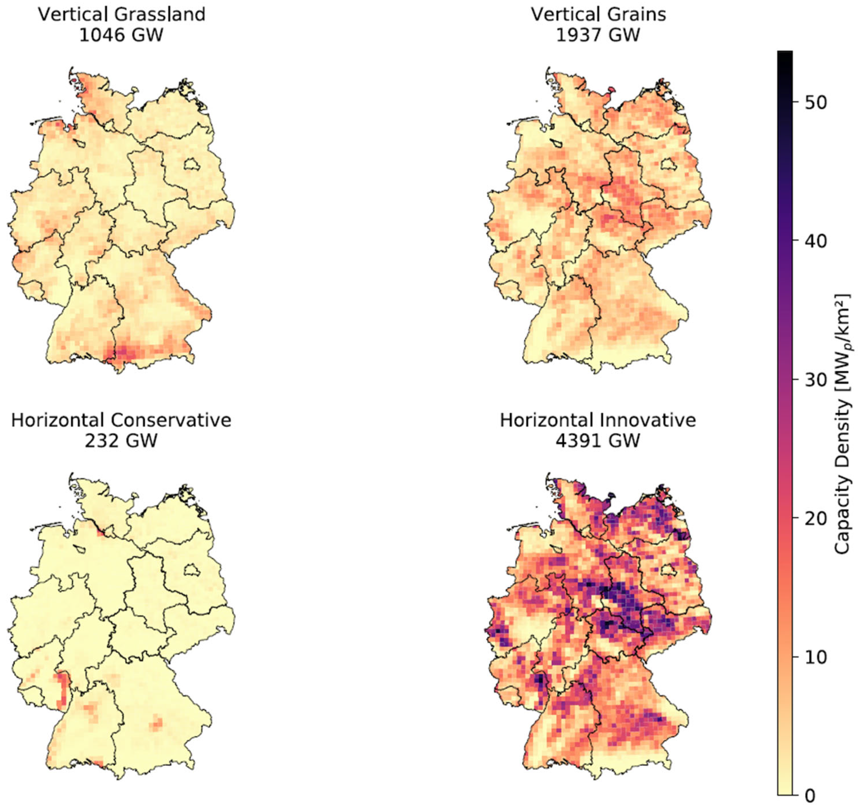 - Rösch, C.; Fakharizadehshirazi, E. The spatial socio-technical potential of agrivoltaics in Germany. Renew. Sustain. Energy Rev. 2024, 202, 114706. [Google Scholar] [CrossRef]