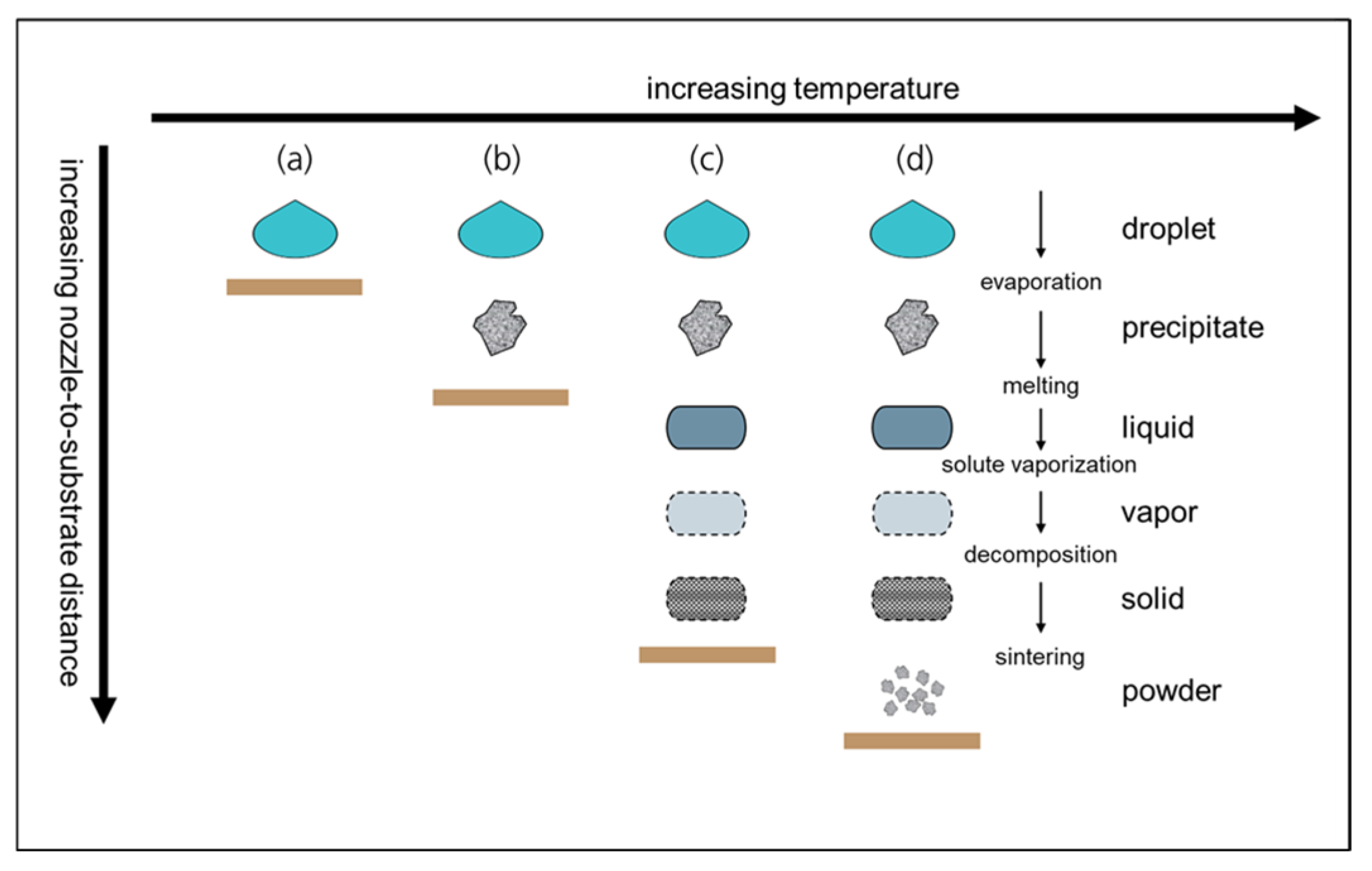 The size of the pores is also a relevant factor that significantly determines the properties of a coating. Precise control of the pore size was mainly achieved by adding pore formers, like starch or polymeric microspheres. These are dissolved particles that determine the desired diameter in the precursor solution, which are not very temperature stable. These pore formers are then removed by burning them out in subsequent heat treatments, see