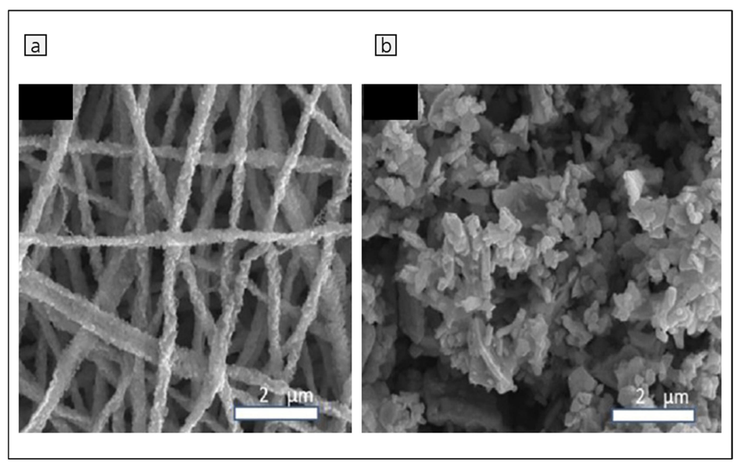 The existing literature indicates that a potential method for enhancing gas transport to reaction sites is the creation of pore branching. The term “branching” is employed to denote the phenomenon of the paths of gas migration diverging from larger pores into smaller ones, thereby facilitating transport also in a horizontal direction towards reaction sites. One option is to realize fibrous structures on an electrode scaffold, presented in