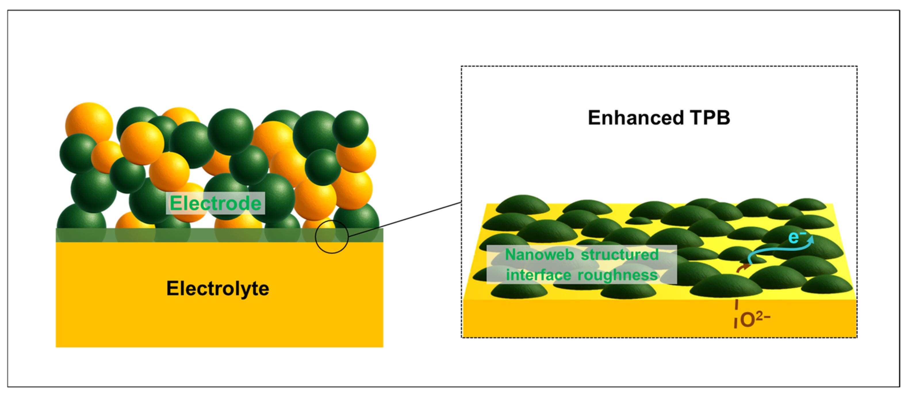 The enhancement of the electrochemically active zone of the electrolyte and electrode can also be achieved through electrode nanoparticle deposition into porous structures of electrolyte scaffolds near the interface of both components [