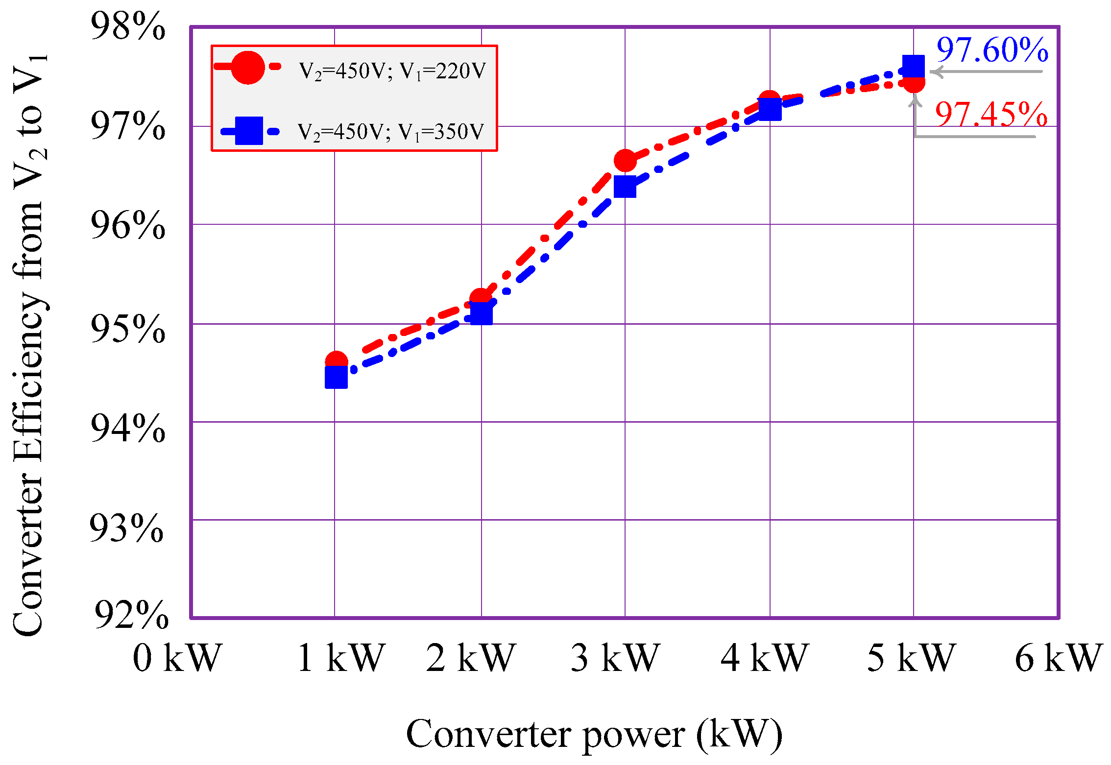 - Berrehil El Kattel, M.; Carvalho Lobato, G.I.; Maia, T.A.C.; de Jesus Cardoso Filho, B. 99%—Efficient, interleaved bidirectional DC-DC converter with new interleaved PWM method of parallel-connected Mosfets. Int. J. Circuit Theory Appl. 2022, 50, 2439–2470. [Google Scholar] [CrossRef]