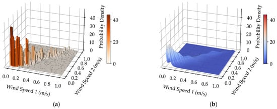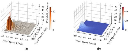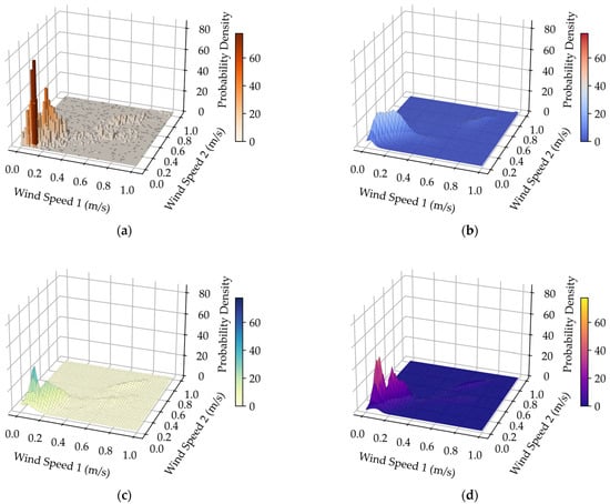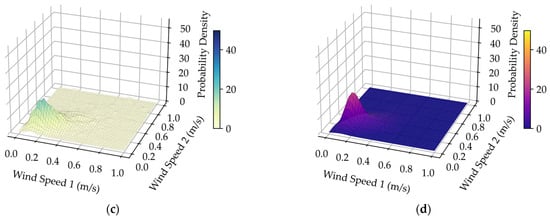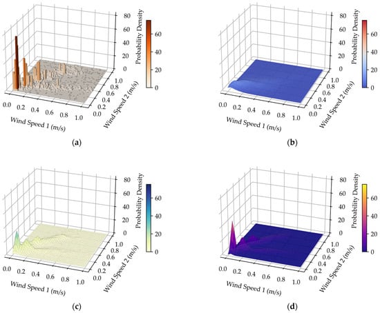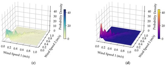 Visually, both the HAKDE model and DPGMM produce distribution surfaces that closely match the histogram of the data, outperforming the Copula method. Table 4 lists the average log-likelihood values for each method, with the HAKDE model achieving the highest likelihood values across all typhoon scenarios except under normal wind. This indicates HAKDE’s superior ability to accurately model the complex dependency structures between wind farms. The comparatively lower performance of the Copula method highlights its limitations in capturing nonlinear and asymmetric correlations.