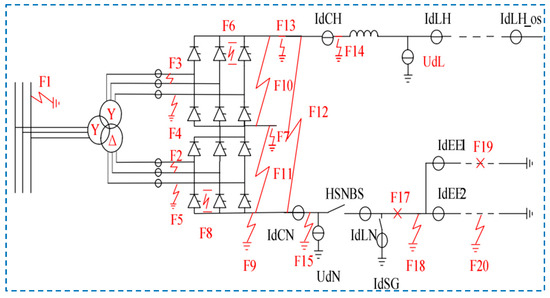 HVDC systems are composed of three primary components: converter stations, transmission lines, and grounding electrode systems [49]. Among these, the converter station represents the most critical and structurally complex element, frequently identified as a high-risk zone for various fault scenarios [50]. These systems are vulnerable to a wide range of failures, including AC and DC side faults, inverter commutation failures [51], converter valve malfunctions [52,53], single-phase and interphase faults, as well as faults triggered by lightning strikes [54].