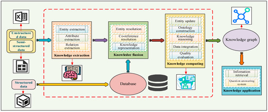 The overall process of constructing a knowledge graph, as illustrated in Figure 3, generally involves four major stages: knowledge extraction, knowledge fusion, knowledge computing, and knowledge application.