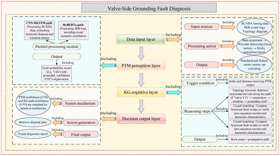 The integration of KG technology has significantly accelerated the digital transformation of modern power systems [88,89]. One of its most prominent applications lies in fault diagnosis [90], as illustrated in Figure 6. By diagnosing diverse fault scenarios and incorporating them into the system, similar future faults can be identified and analyzed more rapidly and accurately. This contributes markedly to the intelligence of power system operation and management.