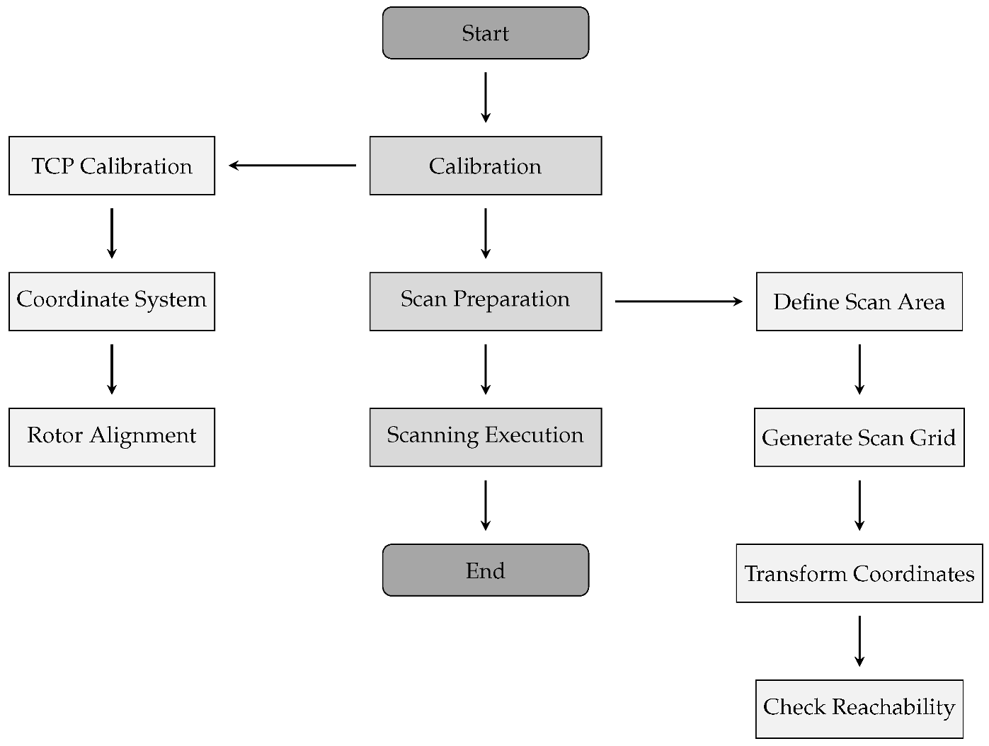 - TCP and coordinate calibration: Offsets and geometric misalignments are corrected using CAD-derived models of the rotor and stator. A transformation matrix aligns their poses within the robot’s base coordinate frame.