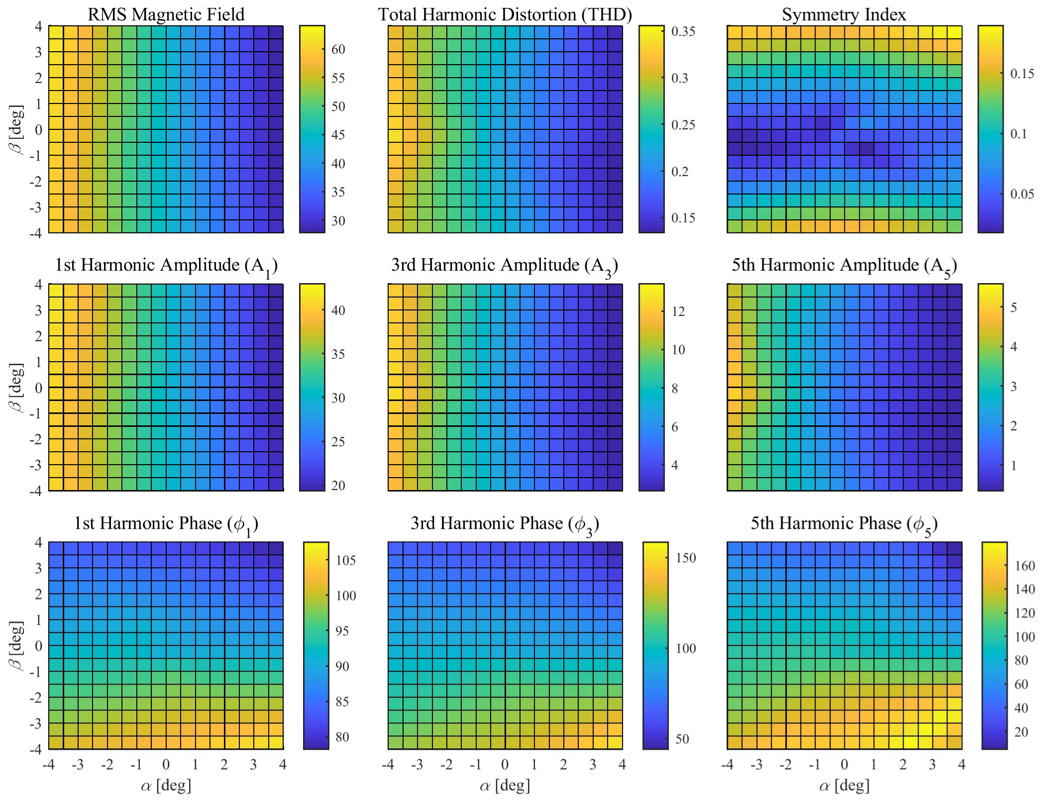 - Provision of pose-resolved RMS/THD and harmonic maps revealing symmetry breaking and phase decoherence under misalignment;