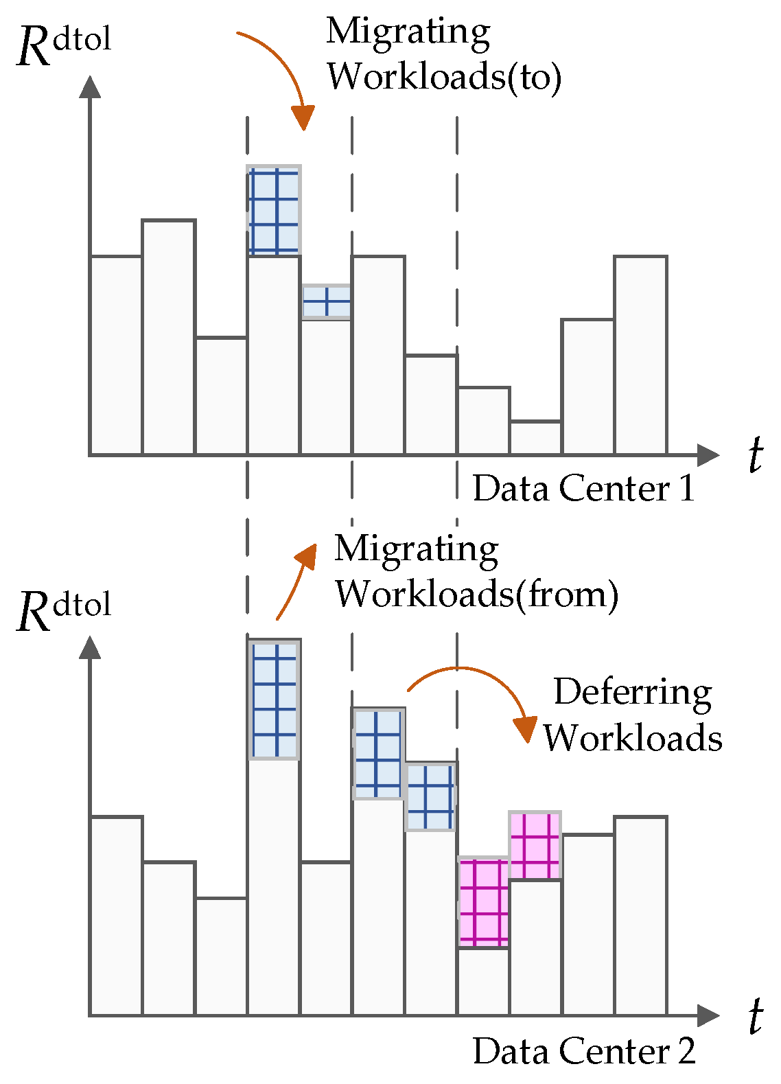 In this section, the proposed energy consumption optimization model incorporates the spatiotemporal of delay-tolerant workloads. Three handling strategies are considered: immediate execution upon arrival; postponement until just before the deadline to identify a more energy-efficient time slot; and migration to another underutilized data center for immediate execution.