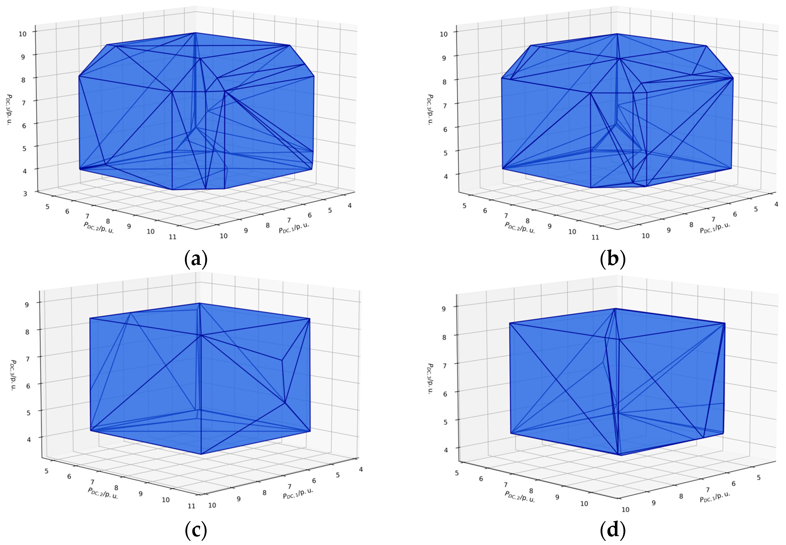 Figure 6, it can be observed that, in this case study, the energy consumption elasticity space constructed by the M1 model has the largest volume, whereas that of M4 is the smallest. According to the fundamental definition of the energy consumption elasticity space, the polyhedral volume reflects the range of the feasible region of data center energy consumption, which characterizes the system’s adjustability in terms of energy flexibility.