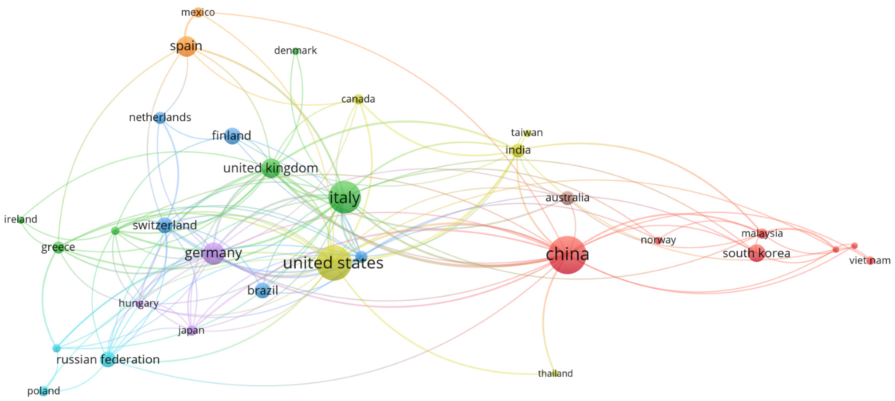 - country of origin of the publication, allowing the identification of geographical regions where research on open innovation is particularly intensive.