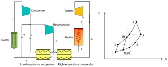 Work flow diagram and temperature–entropy diagram for a recompression cycle.