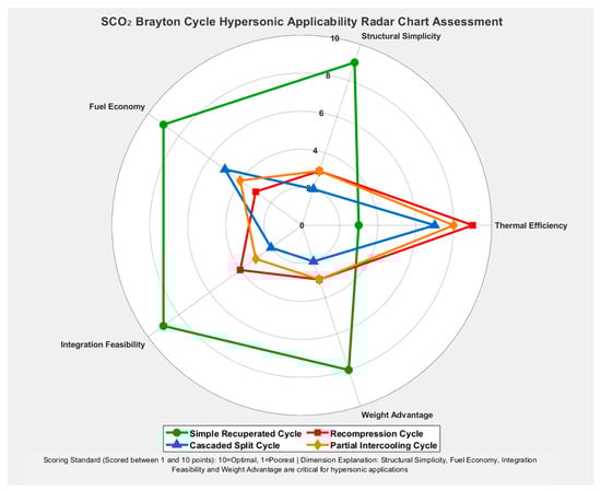 SCO2 Brayton cycle hypersonic applicability radar chart assessment.