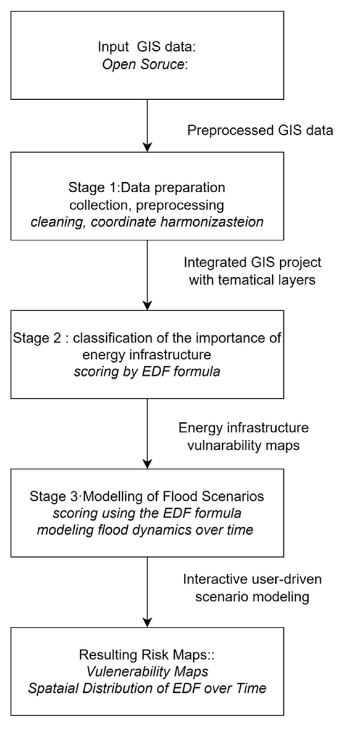 Figure 1. Diagram of the assessment of the vulnerability of energy infrastructure to flood hazards. Source: Own work.