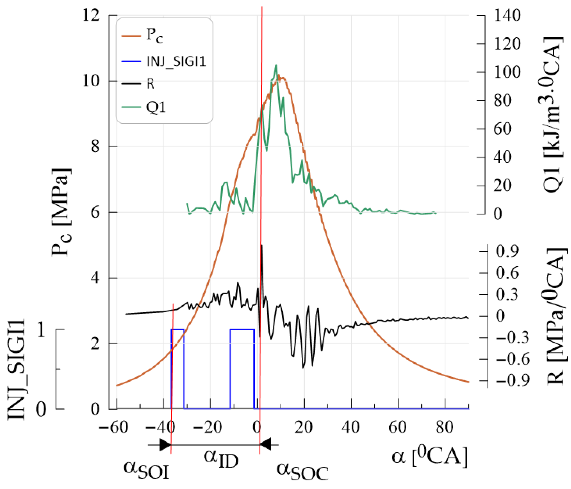- R—pressure rise rate (Pcyl1_der) [MPa/0CA];