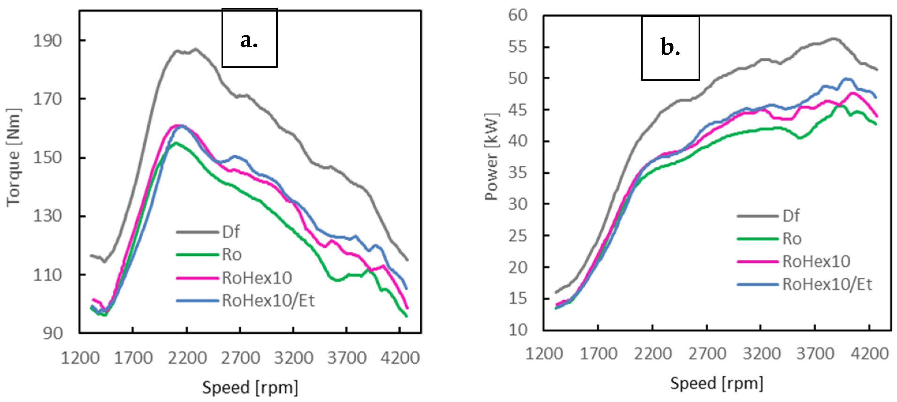 - Žaglinskis, J.; Rimkus, A. Research on the Performance Parameters of a Compression-Ignition Engine Fueled by Blends of Diesel Fuel, Rapeseed Methyl Ester and Hydrotreated Vegetable Oil. Sustainability 2023, 15, 4690. [Google Scholar] [CrossRef]