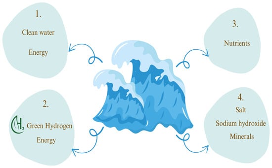 On the other hand, both water and sea winds have been proposed as unconventional renewable energy sources, and as an encouraging and very favourable solution for coastal areas. Offshore wind energy has recently gained popularity because it is more powerful at sea than on land [11]. According to statistical data from the International Energy Agency (IEA), wind energy accounts for 36% of the total market growth of renewable energies [12]. In the case of seawater, the main reported use has been the production of drinking water through desalination processes (using various clean technologies, such as solar energy) [13]. Furthermore, in the case of sea salt, its potential use in the production of sodium-ion batteries has been studied [1]. This huge marine area not only plays a vital role in climate regularion, but it is a promising alternative for energy storage, such as hydrogen [14].
