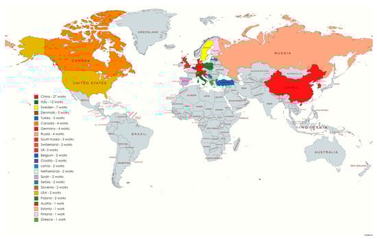 Map of DH projects-related works in different countries for this review work [28] (mapchart.net).