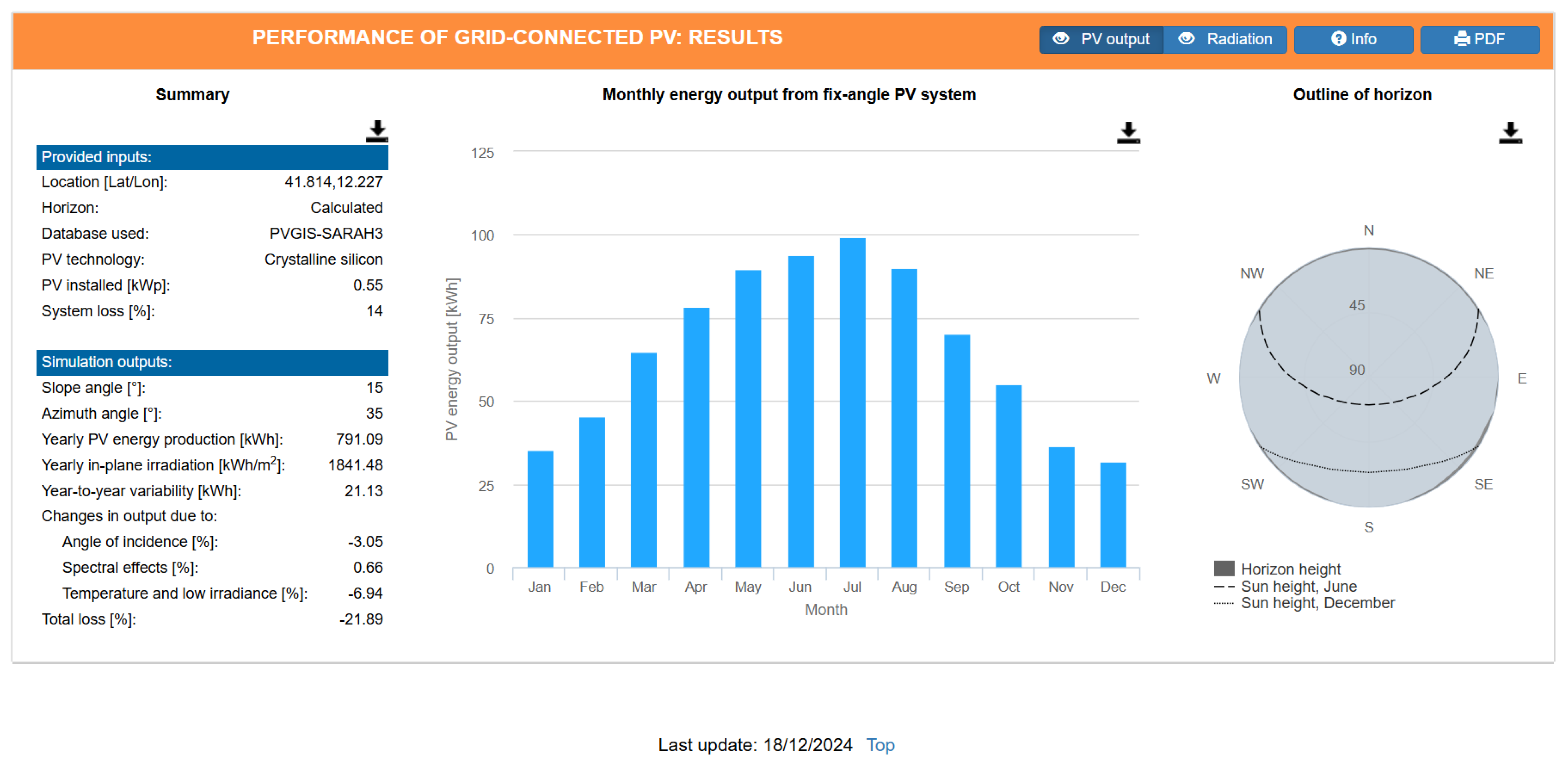 | Energy per panel kWh/y | 825.04 | 826.04 | 826.72 | 821.20 | 811.65 | 797.06 | 778.55 | |