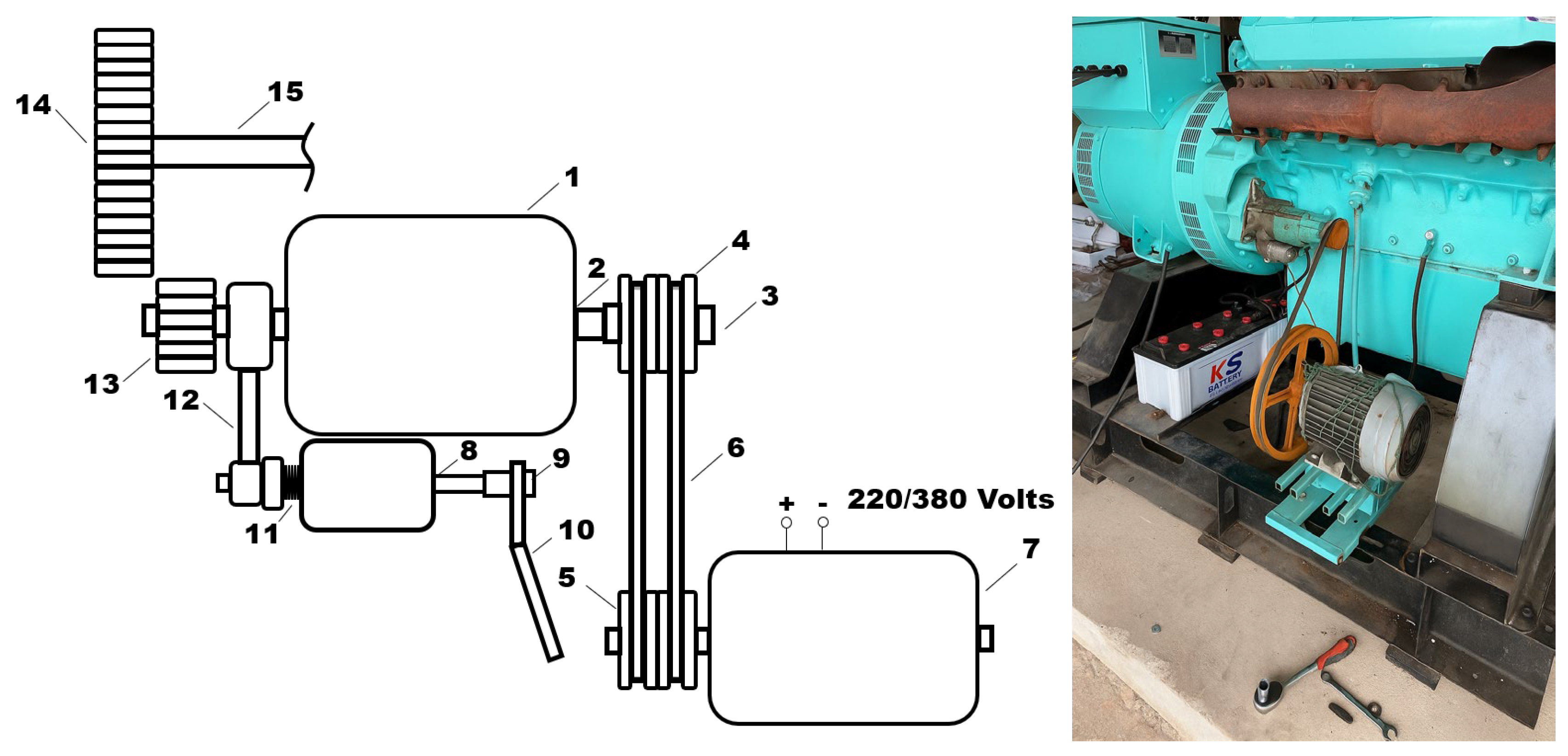 The starting mechanism was redesigned using an external electric motor driving the starter shaft via a belt–pulley system. Performance evaluation over the 524 h field test indicated a 98% successful start rate with average cranking duration between 1.2 and 1.5 s. No critical failure events were observed [