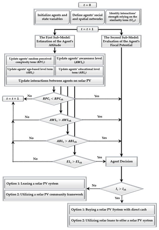 Time-step decision procedure flowchart of agents to adopt solar PV energy (Author, 2025).