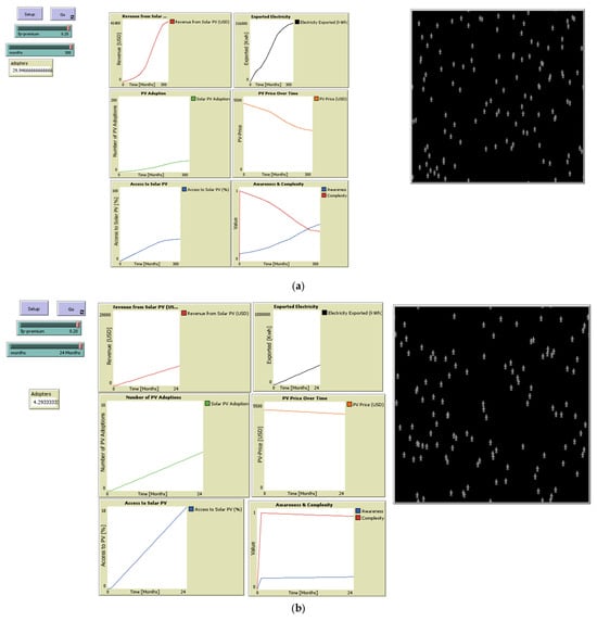 For instance, References [26,27,28] utilize ABM to investigate critical factors that influence RE adoption. Their critical outcomes confirmed a collection of demographic and technical indicators that affect the adoption and diffusion of RE resources. ABM is utilized to predict customer–utility relationships and electric power consumption behavior, enabling optimal management and enhanced decision-making.