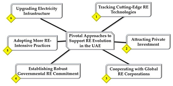 To illustrate, the popularity of RE in the UAE (i.e., RE adoption, prevalence, growth, evolution, and the elimination of complex RE frameworks and implementation procedures) relies on certain independent variables that control it. Monitoring these indices positively can facilitate and accelerate RE adoption. Independent variables include sufficient financial liquidity, viable RE laws, equity considerations in RE regulations, flexible RE programs, the existence of efficient ESTs, the provision of subsidies and incentives, and the supply of a welcoming and supportive RE investment climate.