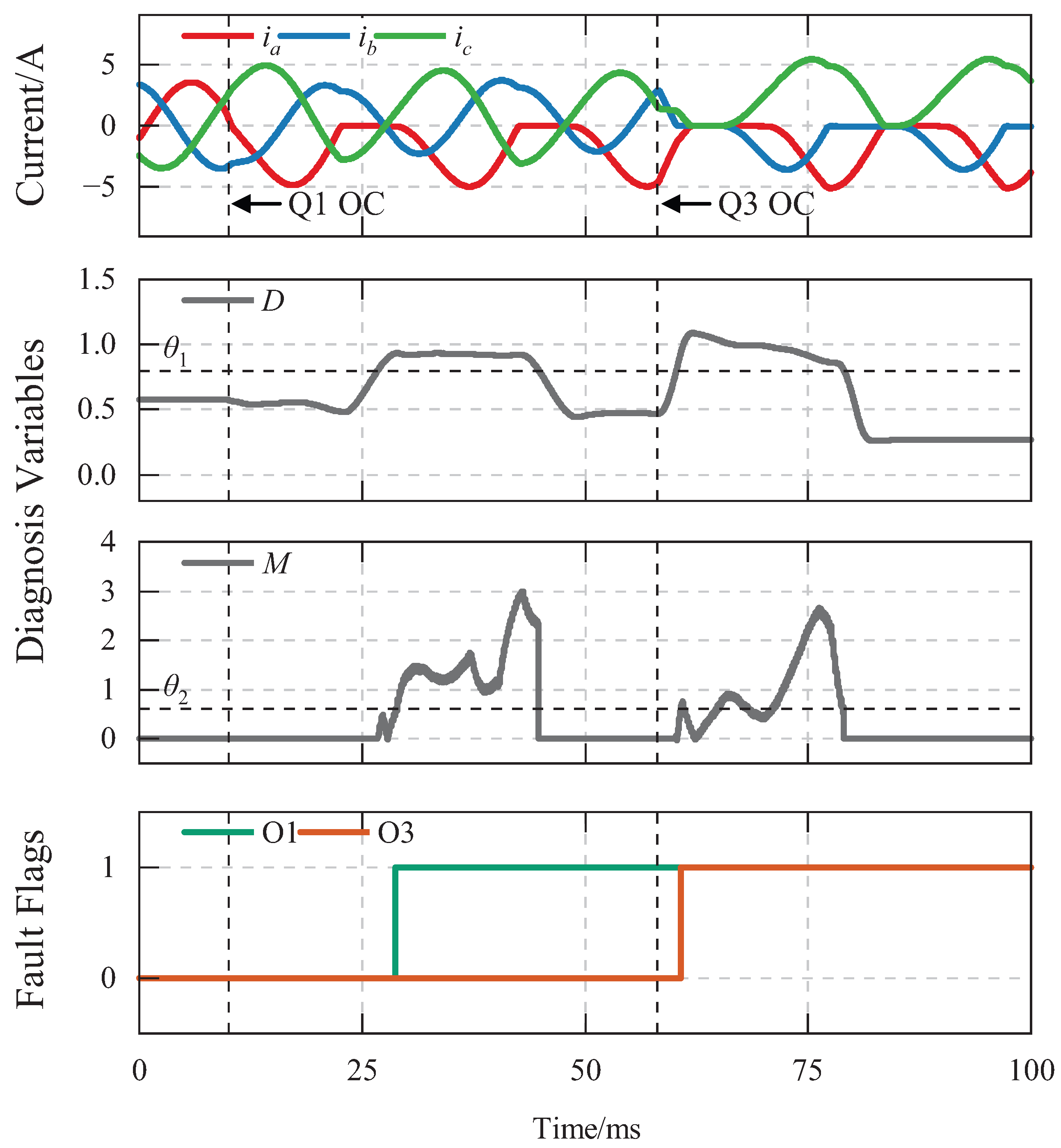 - Sun, T.; Chen, C.; Wang, S.; Zhang, B.; Fu, Y.; Li, J. Inverter Open Circuit Fault Diagnosis Based on Residual Performance Evaluation. IET Power Electron. 2023, 16, 2560–2576. [Google Scholar] [CrossRef]