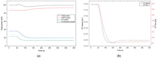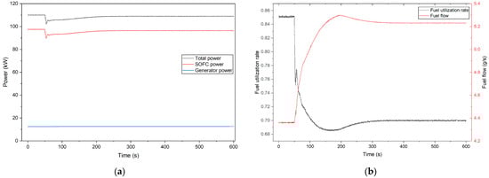 Table 1 presents the design and simulation values of each parameter for the SOFC-GT hybrid system under rated operating conditions. With the exception of the compressor power consumption and generator output power, the steady-state relative error of the rest of the equipment is less than 0.5%. The maximum relative error, which stands at 3.92%, stems from the generator output power.