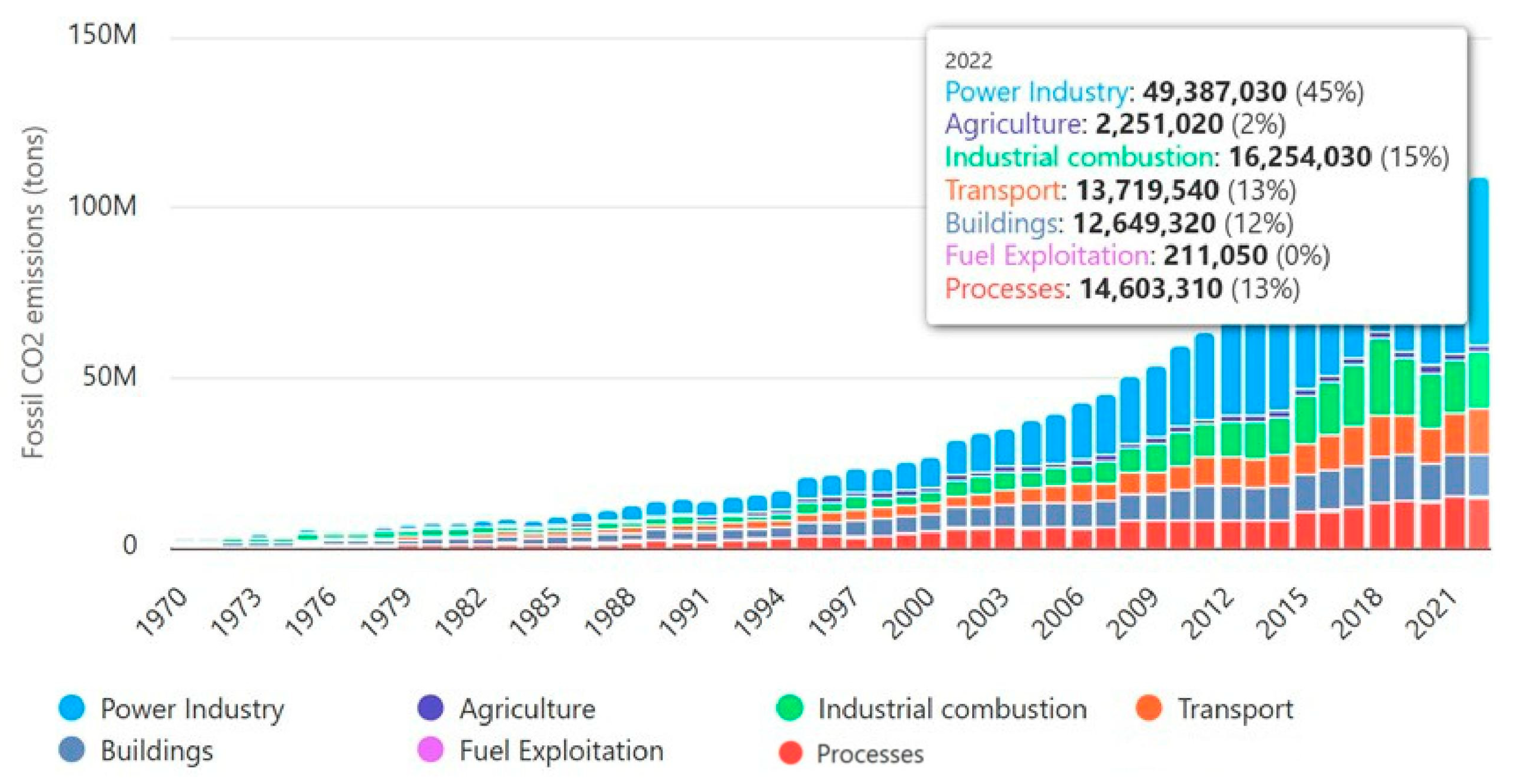 56]. This is a systematic method to identify the environmental impact that is connected with a product throughout its entire life, including raw materials collection, processing, manufacturing, transportation, installation, operation, maintenance, and even the recycling process. This is calculated by the international guidelines of the IPCC (Intergovernmental Panel on Climate Change) and IEA-PVPS (International Energy Agency—Photovoltaic Power Systems Program).