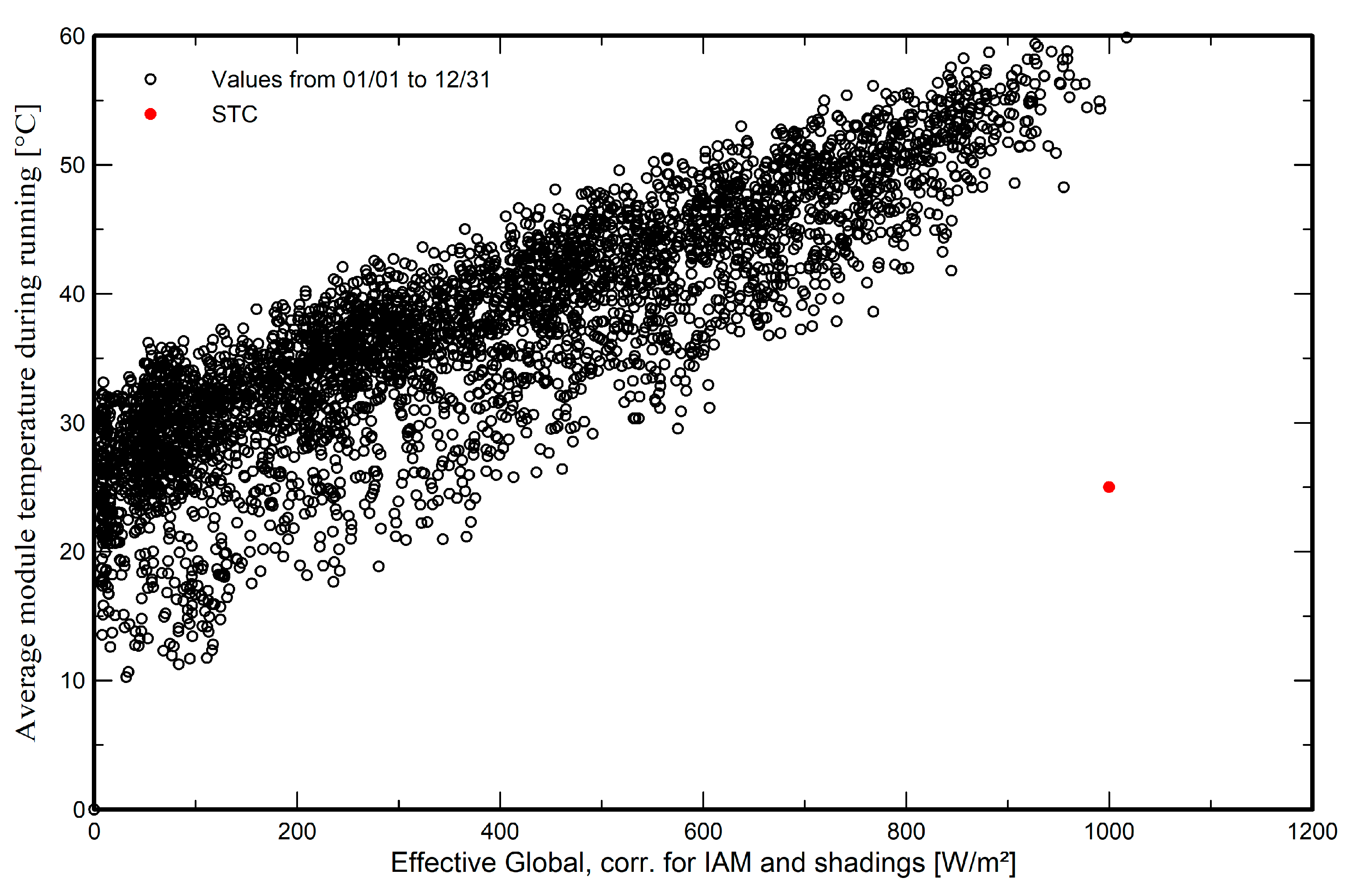 2 is very challenging. One of the most significant factors affecting solar panel performance is, of course, high temperatures; the STC point (25 °C at 1000 W/m