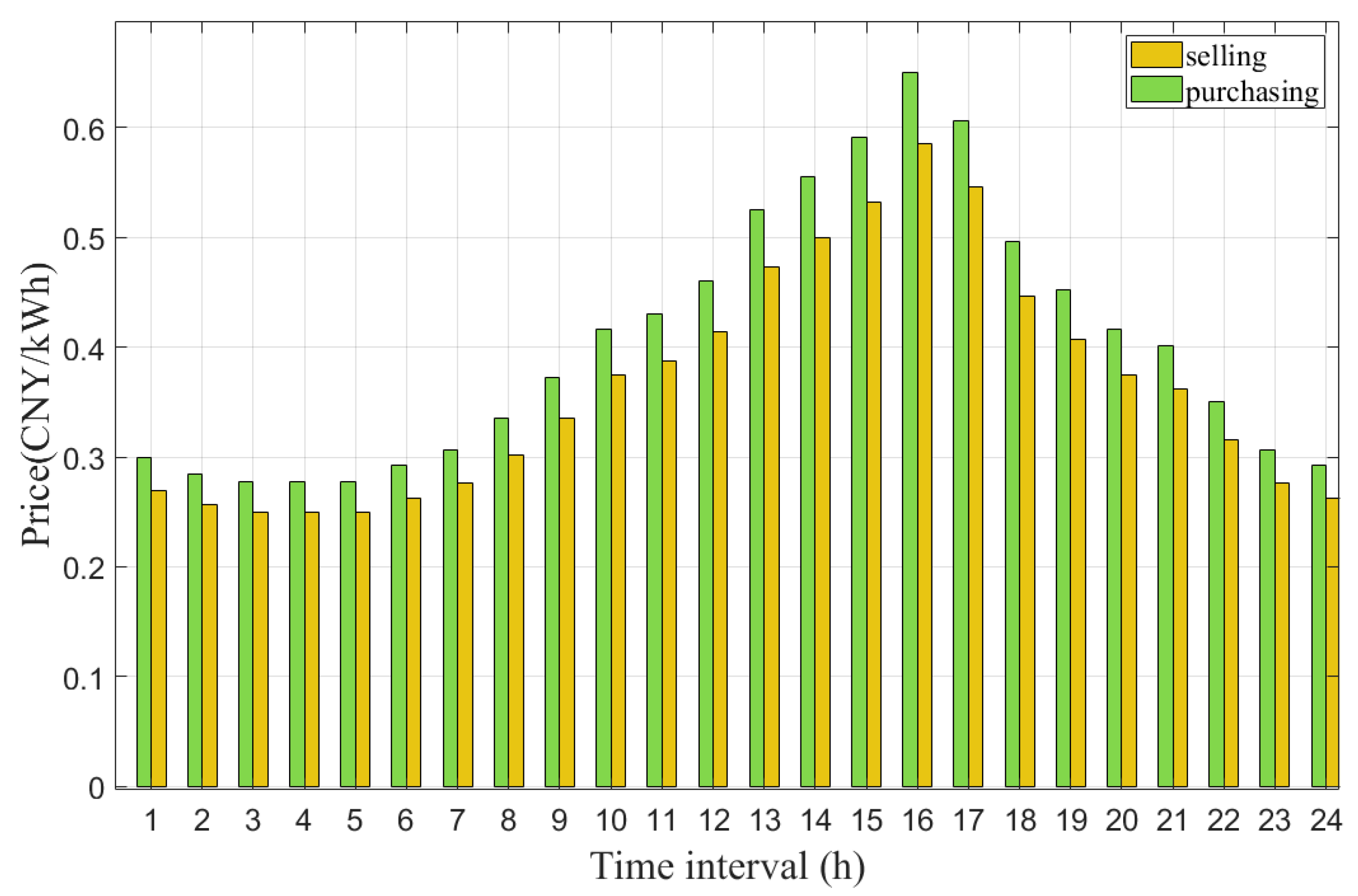 - Wang, H.; Li, K.; Zhang, C.; Ma, X. Distributed cooperative optimal operation strategy of community integrated energy system based on Stackelberg game. Proc. CSEE 2020, 40, 5435–5445. [Google Scholar]
