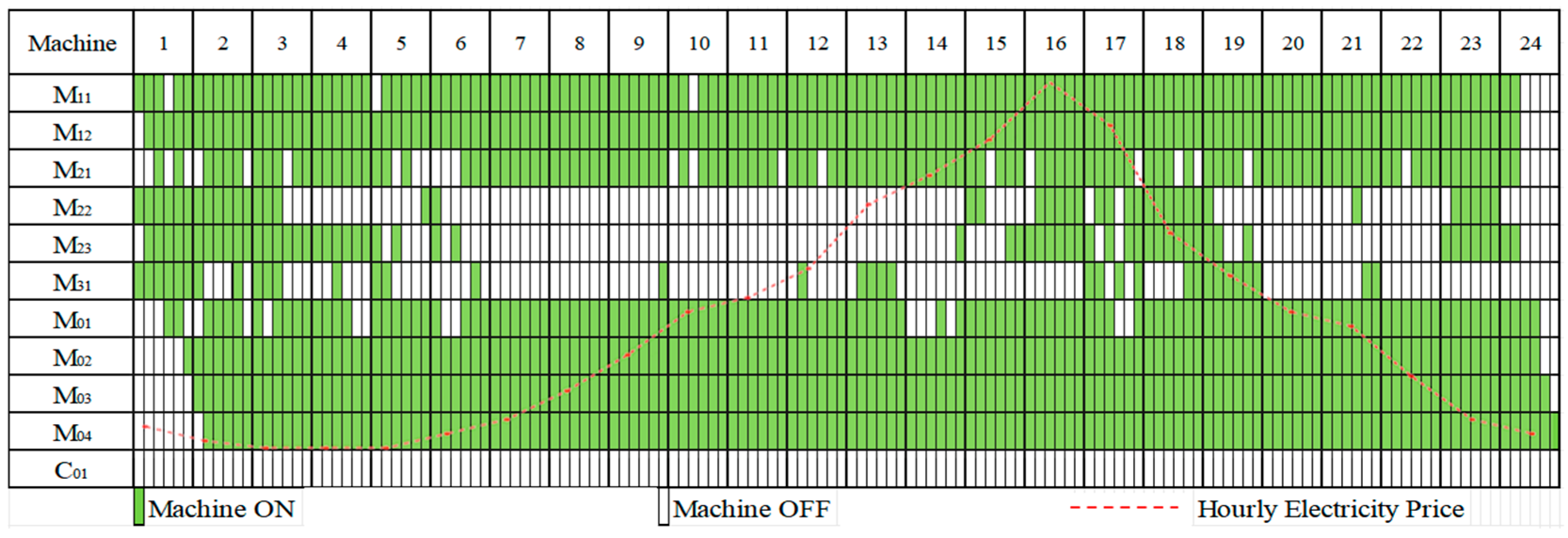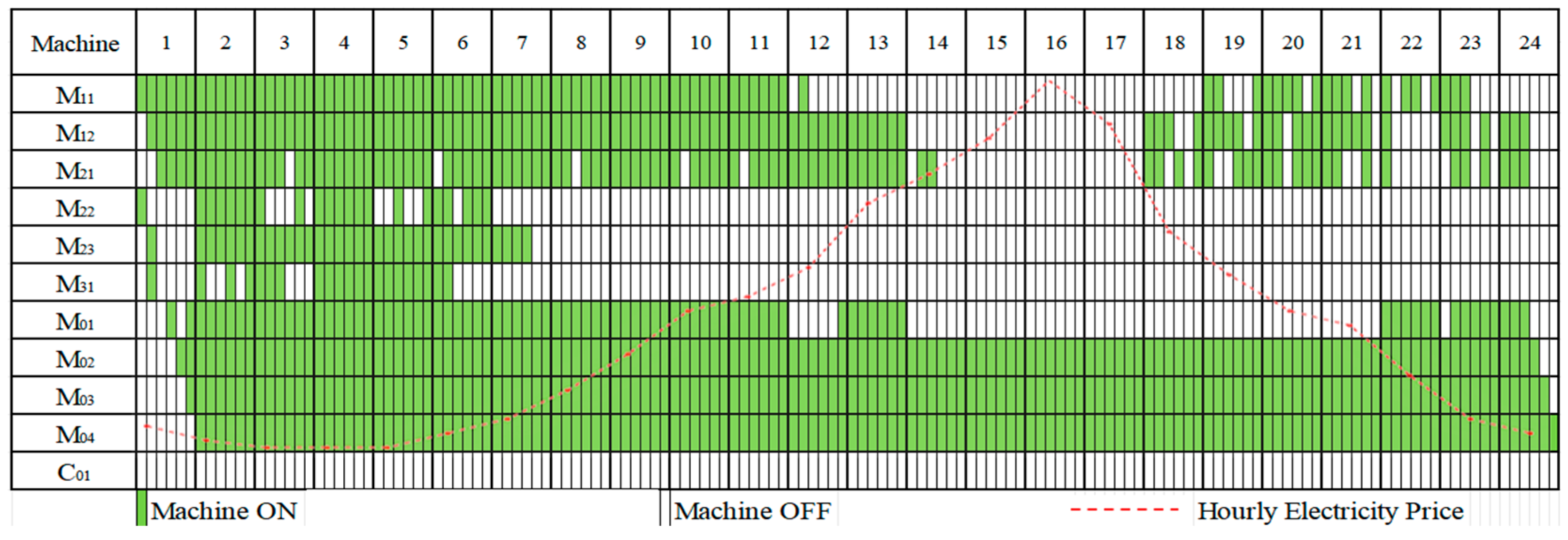 - Jin, S.S.; Wang, B.Y.; Zhang, G.; Fan, X.Y.; Jiang, S.Q.; Cao, M.Y.; Wang, Y.L. Research on Low-Carbon-Emission Scheduling of Workshop under Uncertainty. Appl. Sci. 2024, 14, 4976. [Google Scholar]