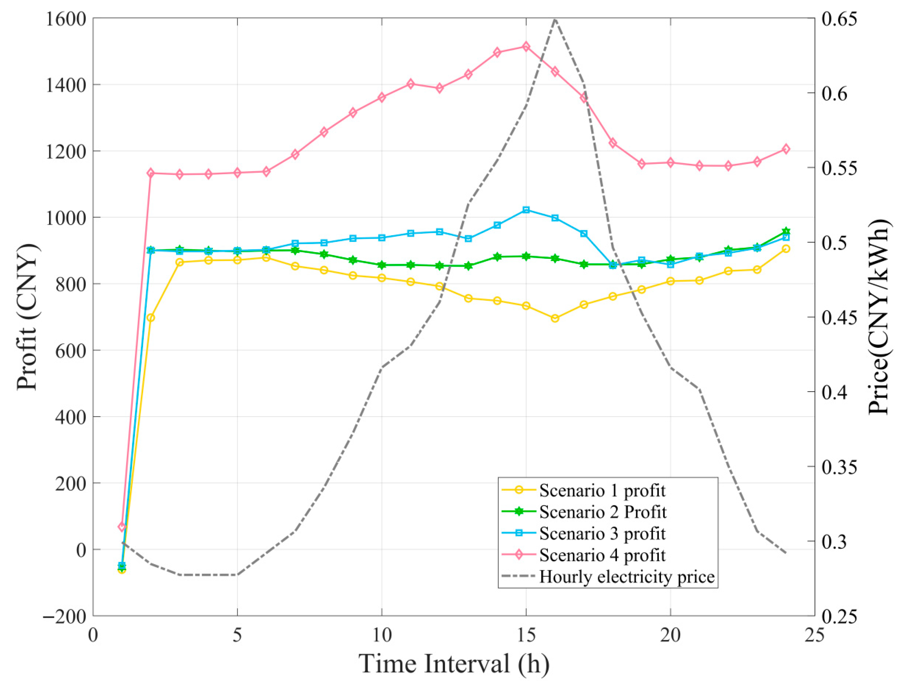 | Scene | Total Electricity Generation of DGS (kWh) | Total Actual Carbon Emission (t) | Total Carbon Capture (t) | Total Production Quantity (pcs) | Total Profits (CNY) |