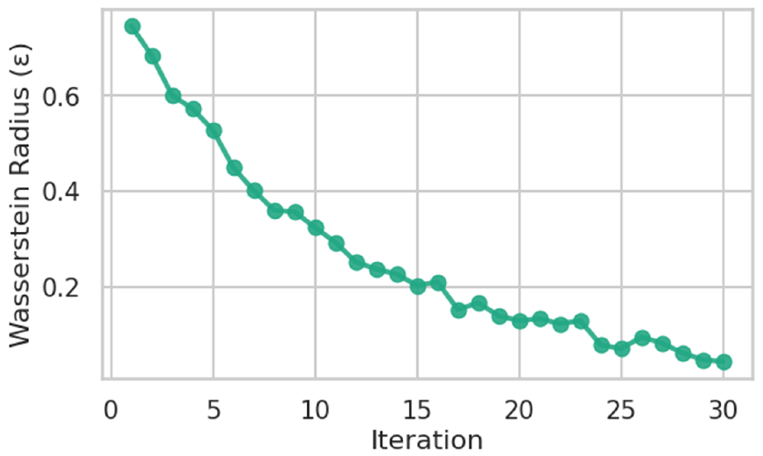 Figure 5 depicts the convergence trajectory of the Wasserstein radius